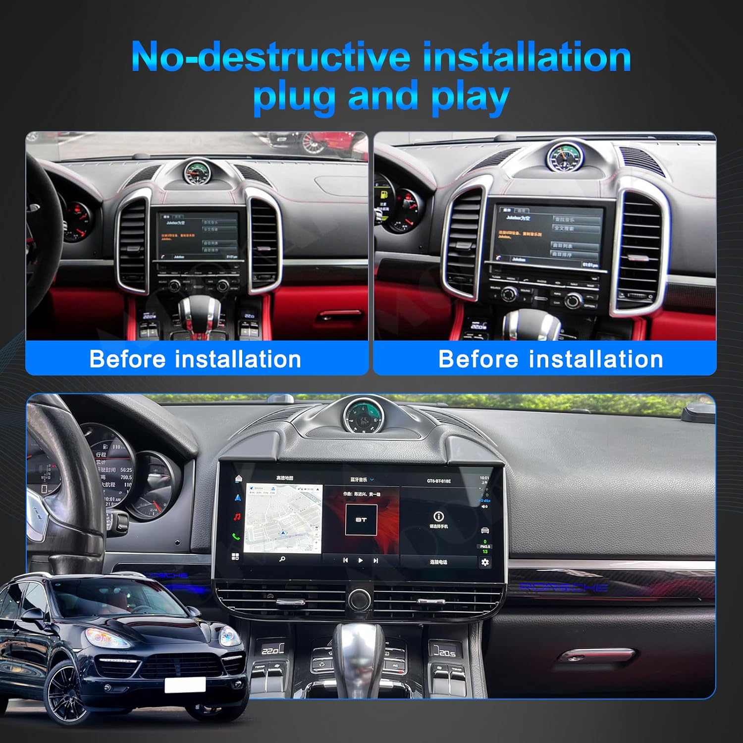 Qualcomm Android 13 Car Radio for Porsche Cayenne 2010-2017 Stereo Replacement GPS Navigation Head Unit Multimedia Player 12.3 Inch IPS Touch Screen Carplay (PCM 3.1, 4-64GB)
