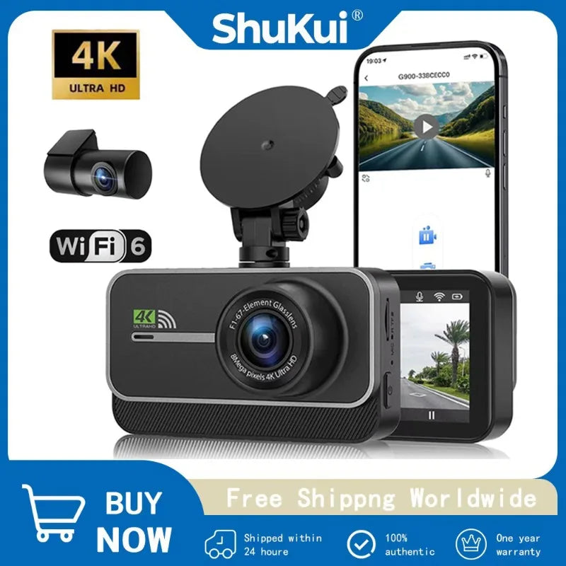 Real 4K WiFi Dual Dash Cam,Optional Rear/Cabin Camera,3" IPS Screen with Night Vision,24H Parking Mode Dashboard Camera Recorder