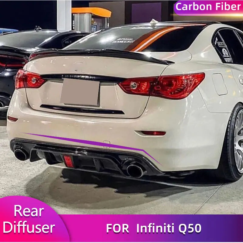 Real Carbon Fiber Car Racing Rear Bumper Diffuser Lip Spoiler For Infiniti Q50 2014-2017 Rear Diffuser Lip Apron with Light