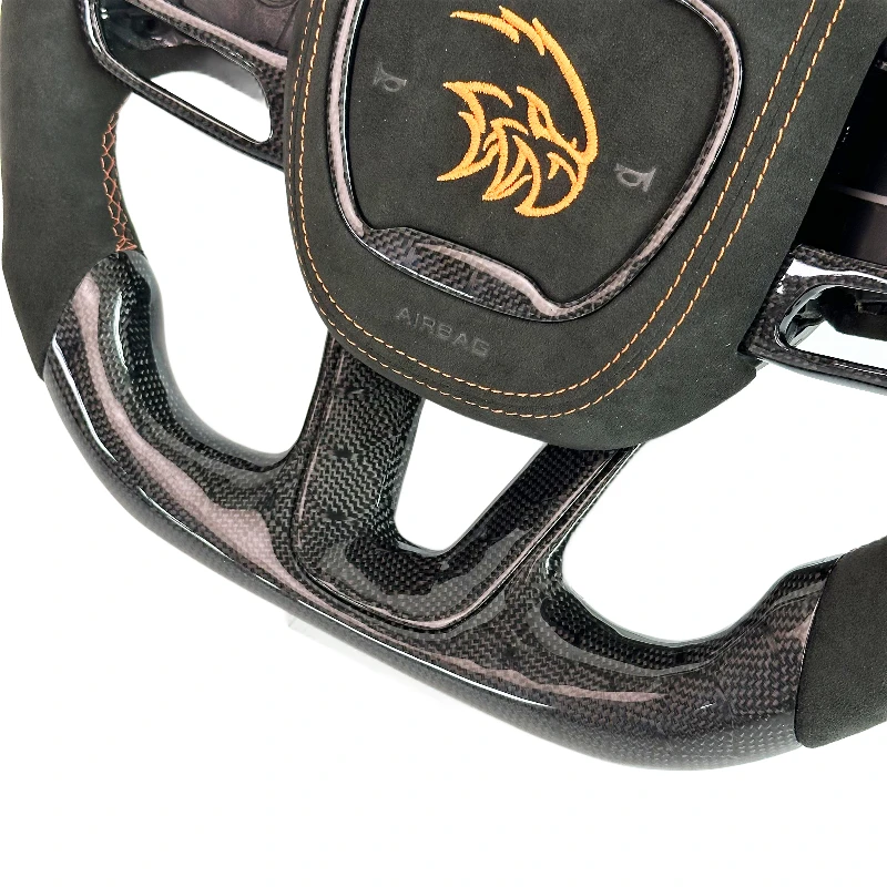Real Carbon Fiber Steering Wheel Perforated Leather For Dodge Challenger Charger SRT HELLCAT 2015‑2022