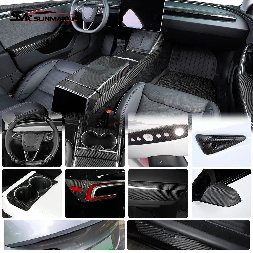 For Tesla Model 3 Highland 2024 Forged Carbon Fiber Steering Wheel Trim Cover Car Accessories
