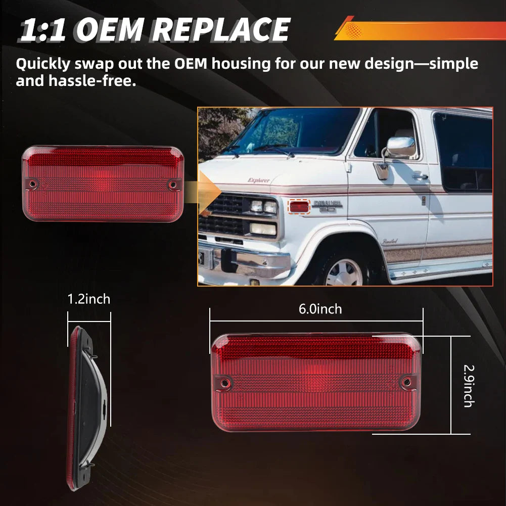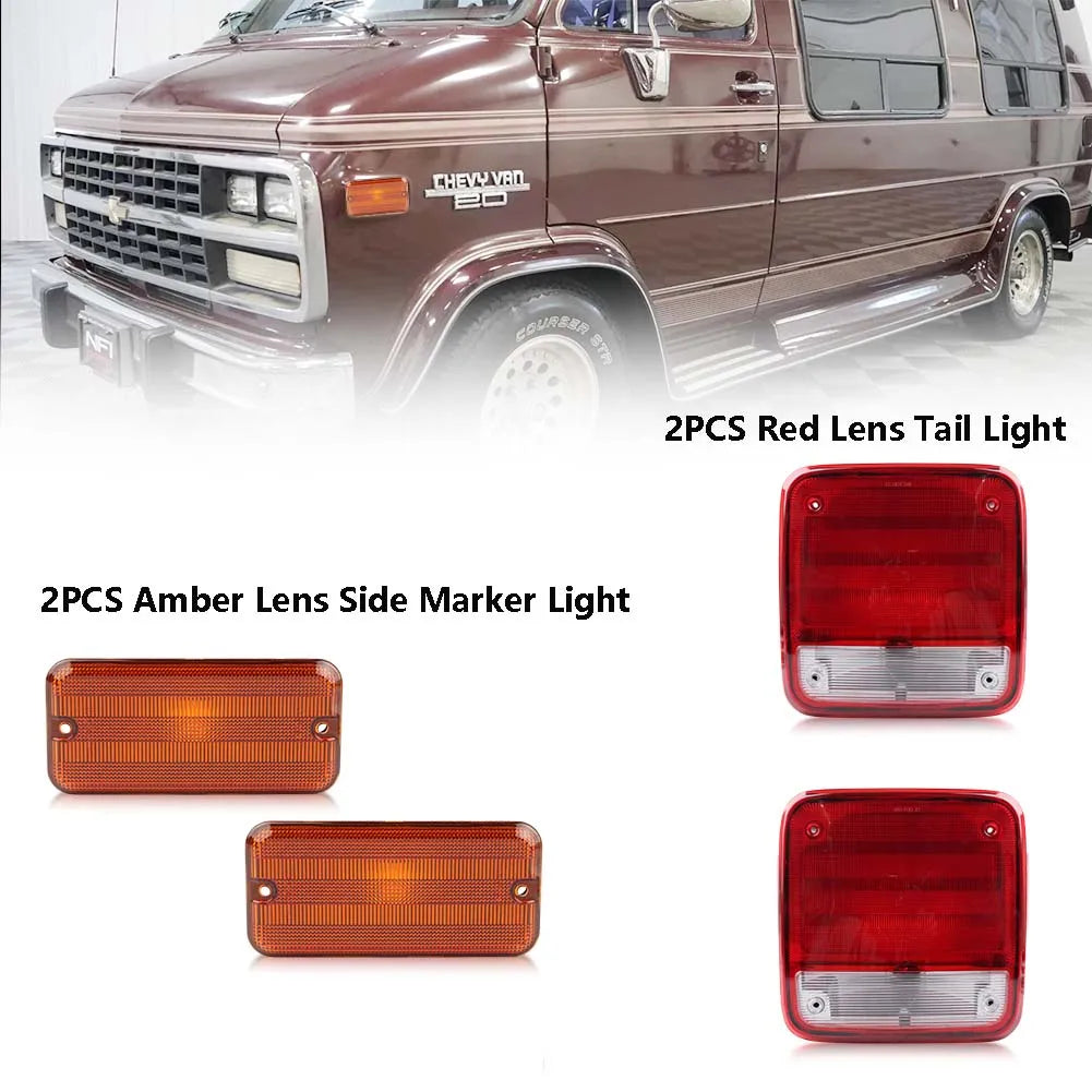 This page features One Set (6 Pieces / 4 Pieces) Red/Smoked Lens Rear Tail Light Lamps and Red/Smoked/Amber Lens Side Marker Light Lamps Kit For 1985-1995 Chevrolet G10 G20 G30 P20 P30 GMC G1500 G2500 G3500 P2500 P3500 Van