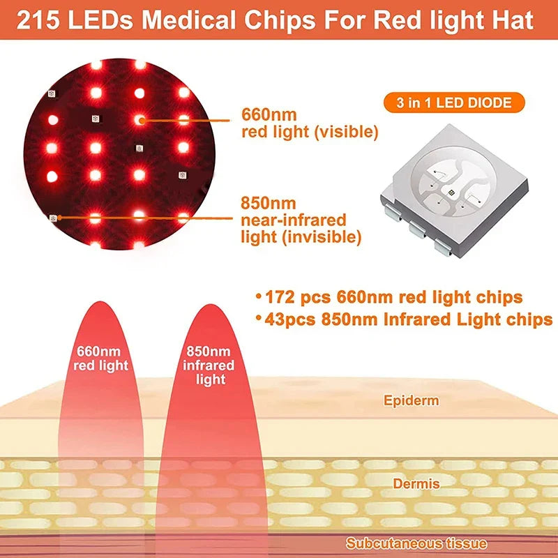 Red&Infrared Light Hair Growth Cap LED Red Light Therapy Cap For Hair Growth For Hair Loss Promote Hair Fast Regrow Care Hat