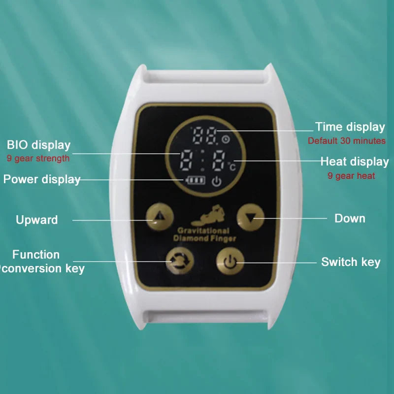 1.Portable golden finger, relaxed and unrestricted, wake up tired you anytime and anywhere. The control panel can easily set the heat and micro electric intensity, which is simple and easy to use. The numbers and patterns are displayed on the screen, and the operation is more intuitive.