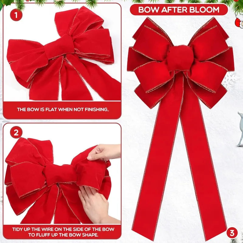 Ribbon Velvet Wreath Bows with Gold Edge Christmas Handmade Tree Topper
