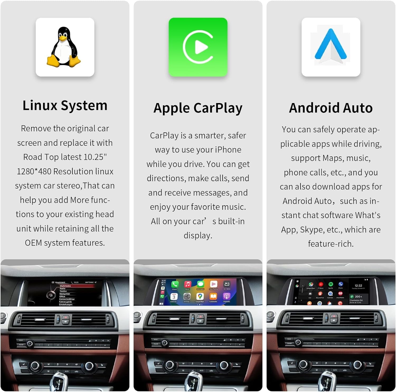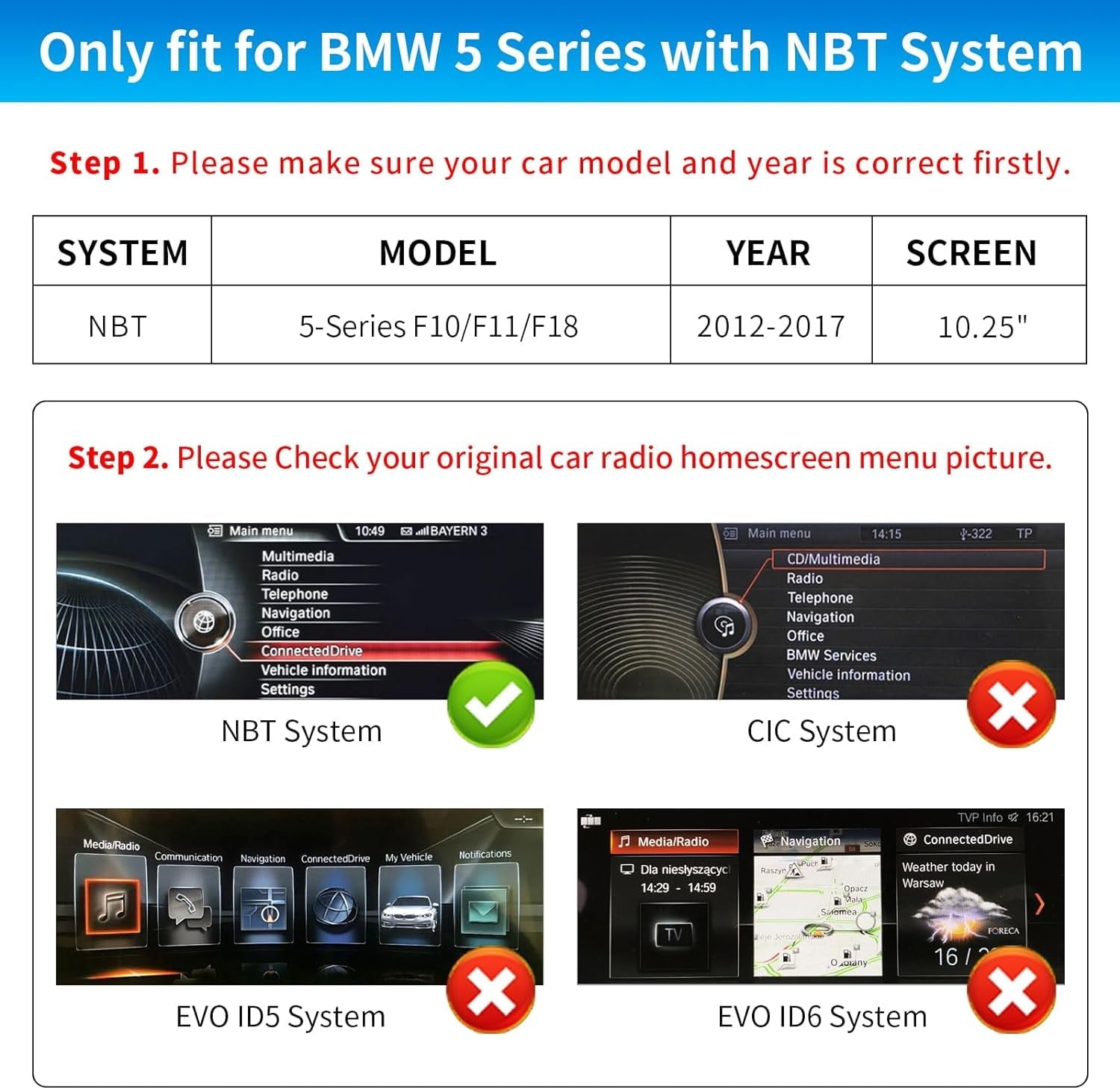 BMW Road Top Wireless Carplay & Android Auto, 10.25 Inch Car Stereo Receiver for BMW 5 Series F10/F11/F18 2012-2016 Year with NBT System, Car Touchscreen Multimedia Radio Receiver with Mirrorlink