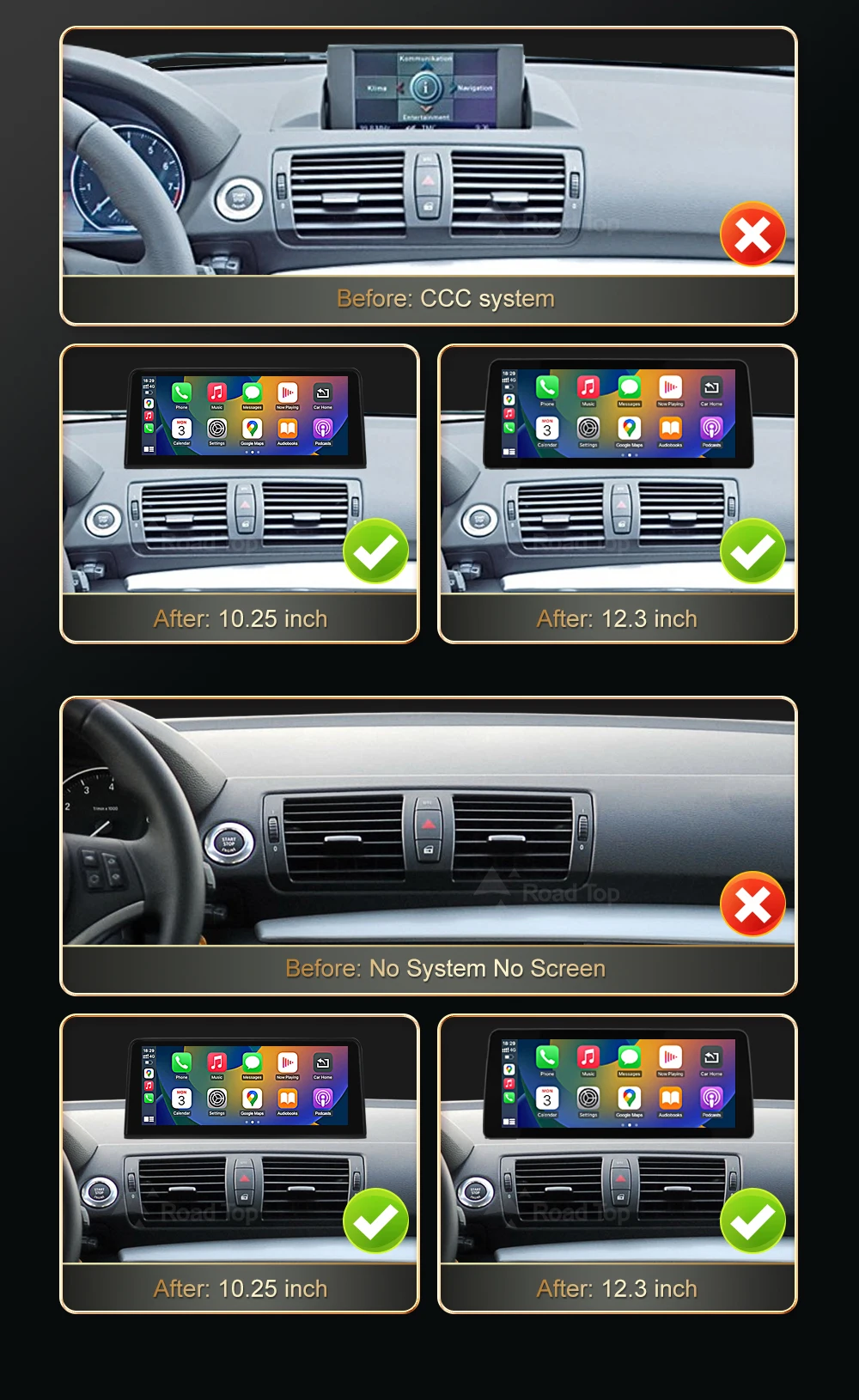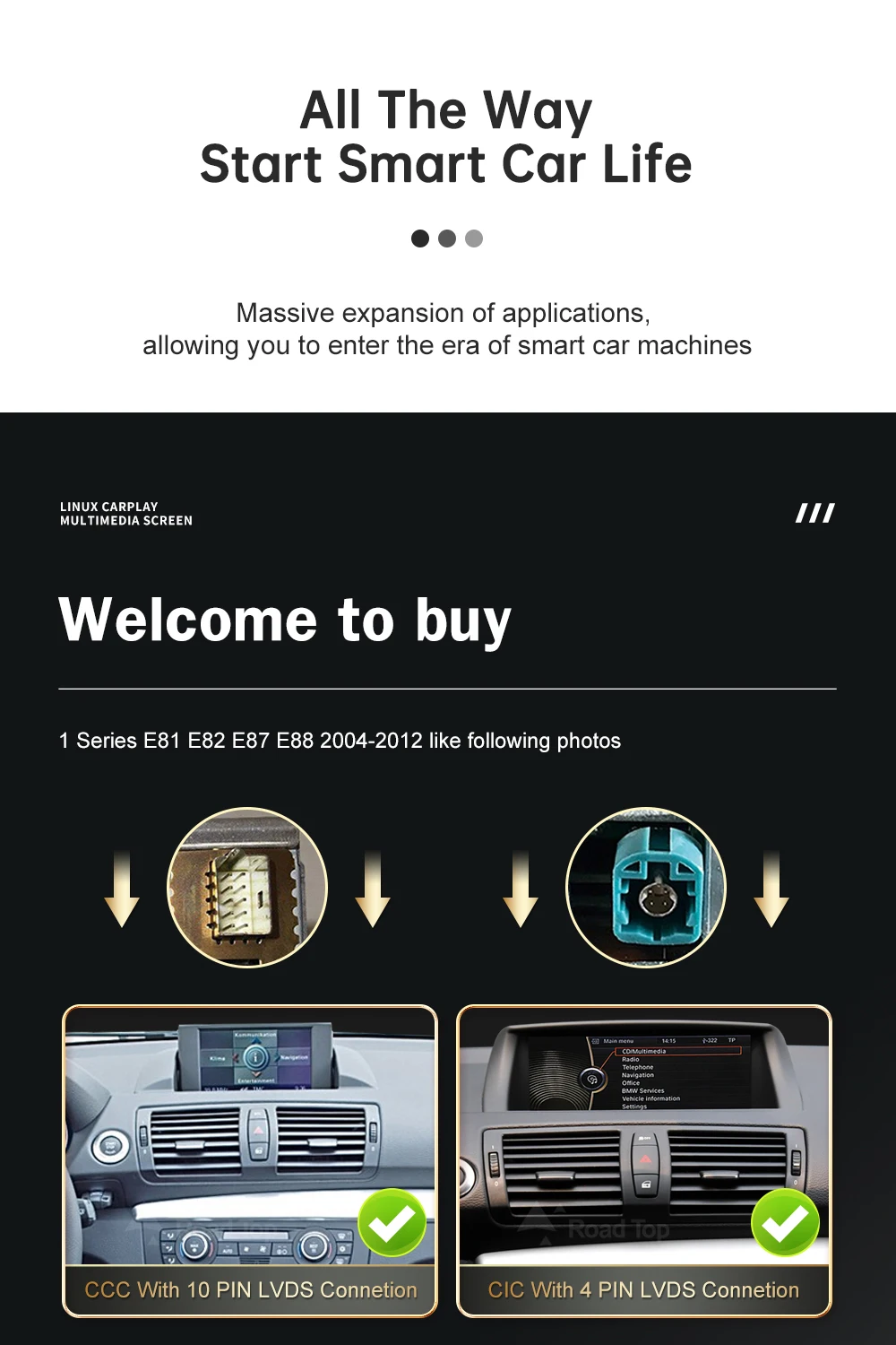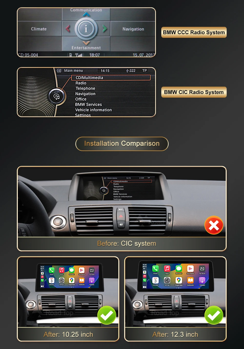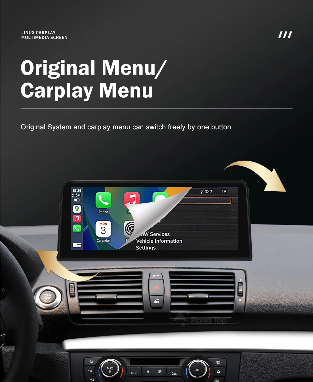 RoadTop Wireless CarPlay Android Auto For BMW Series 1 E81 E82 E87 E88 CCC CIC System Multimedia Display Screen