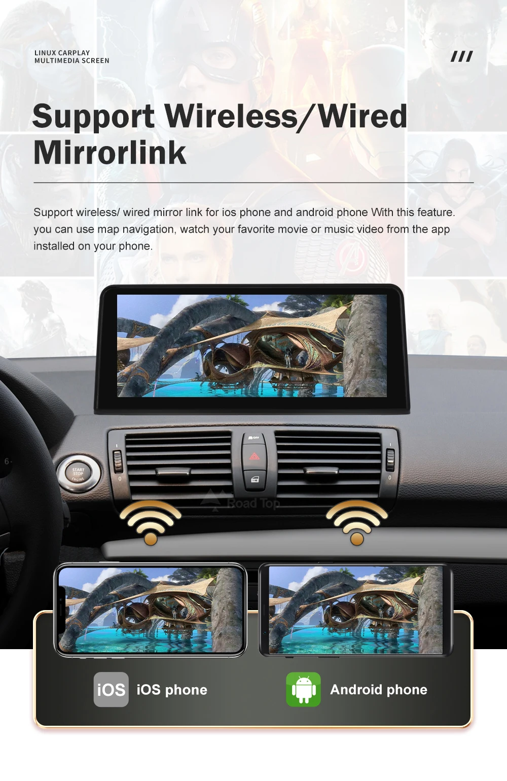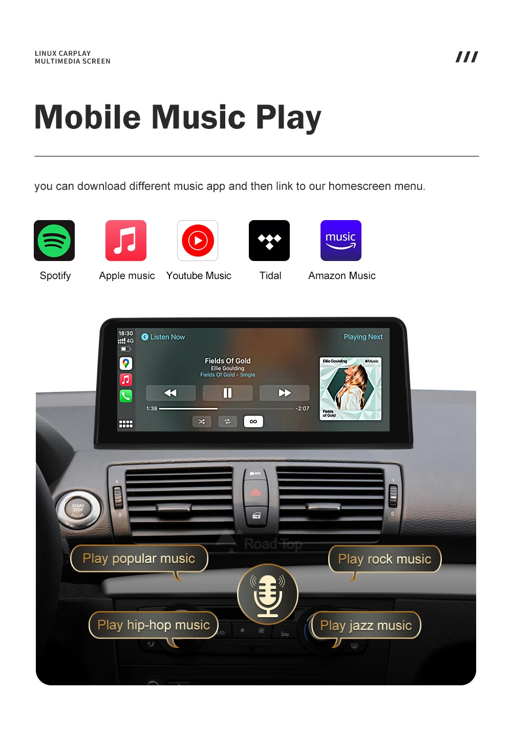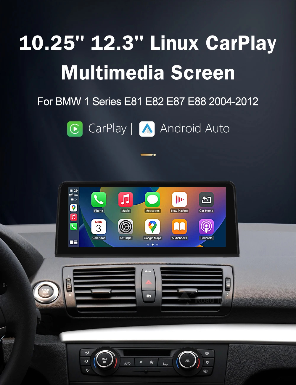 RoadTop Wireless CarPlay Android Auto For BMW Series 1 E81 E82 E87 E88 CCC CIC System Multimedia Display Screen