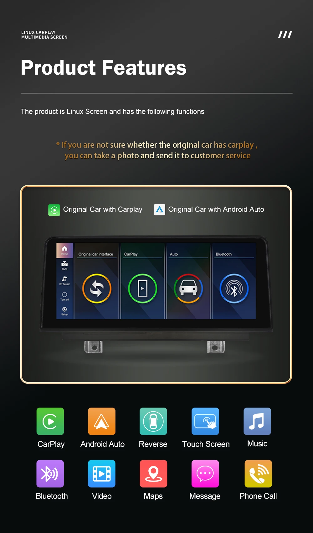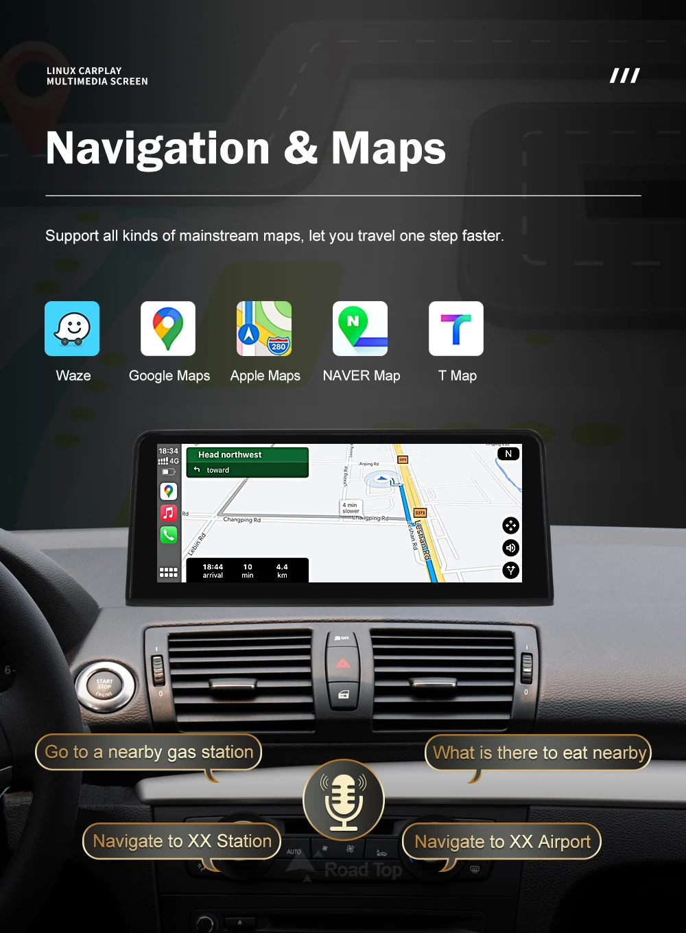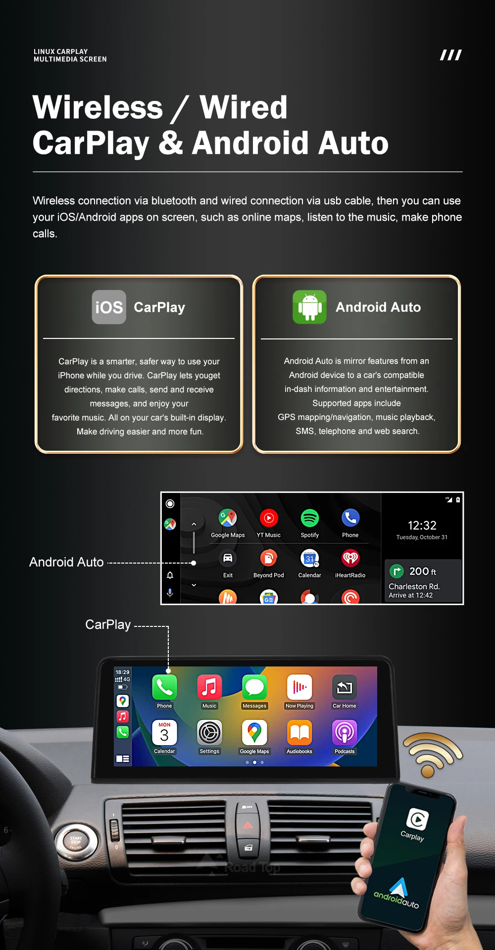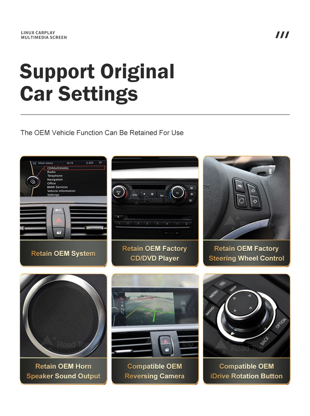 RoadTop Wireless CarPlay Android Auto For BMW Series 1 E81 E82 E87 E88 CCC CIC System Multimedia Display Screen