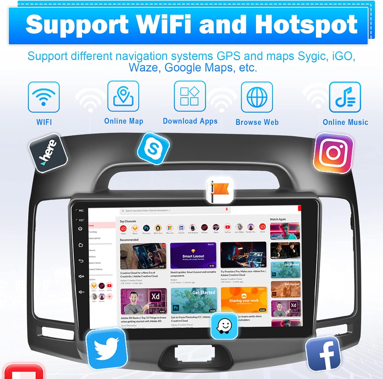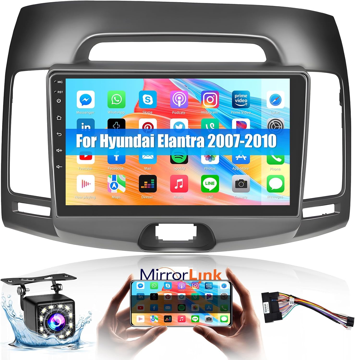 Roinvou Android Car Stereo Radio for 2007-2010 Hyundai Elantra, 9 Inch Touch Screen with GPS Bluetooth Backup Camera WiFi Mirror Link FM SWC