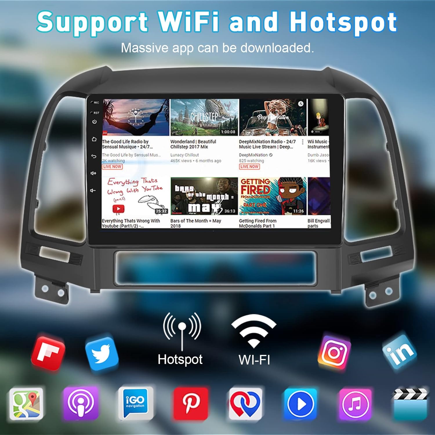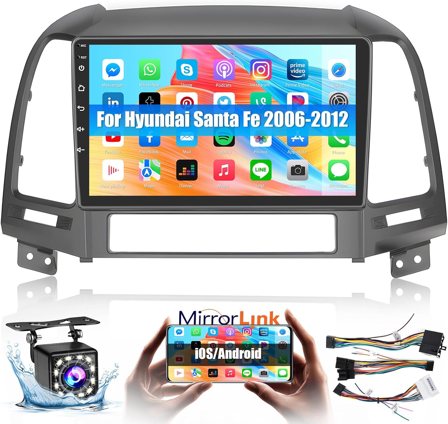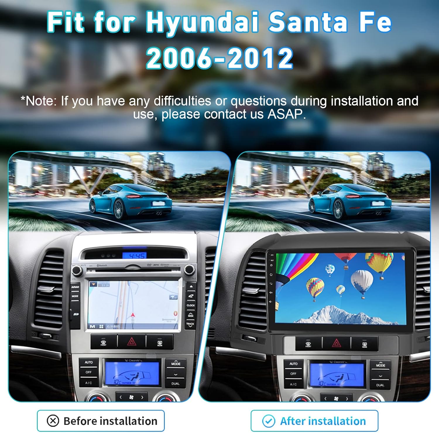 Roinvou for Hyundai Santa Fe 2006-2012 Android Car Radio Stereo 9 Inch Capacitive HD Touch Screen Mirror Link GPS Navigation Head Unit with WiFi Bluetooth USB FM RDS Steering Wheel Controls