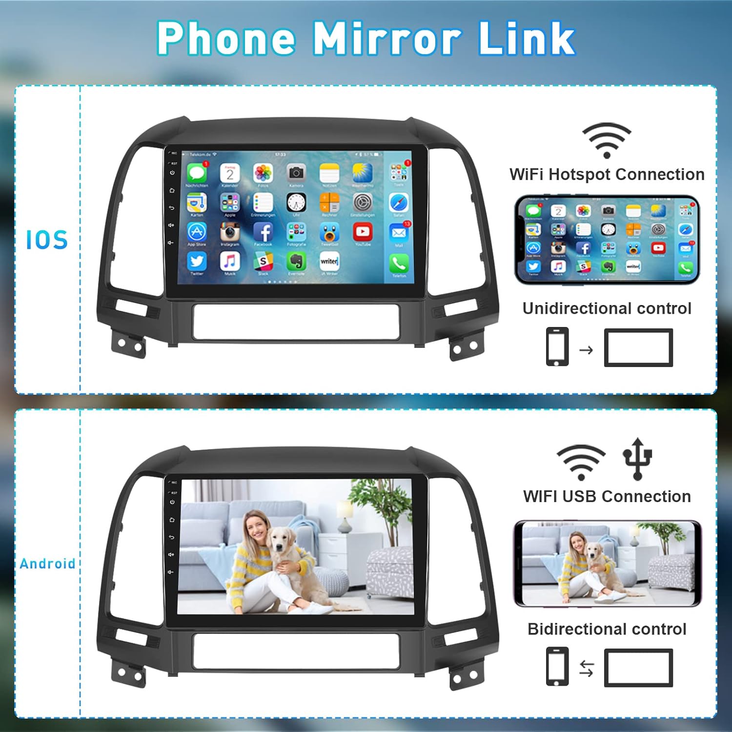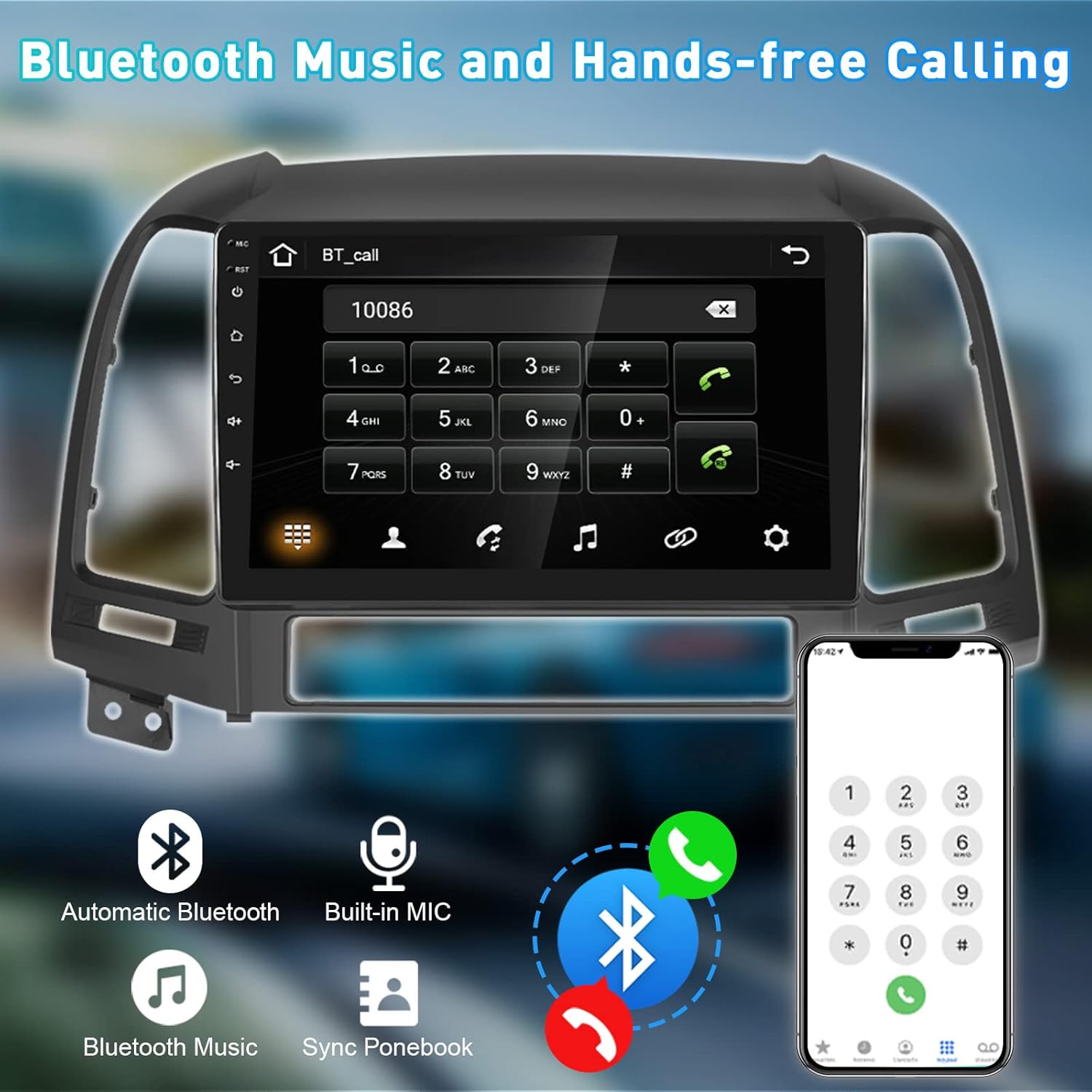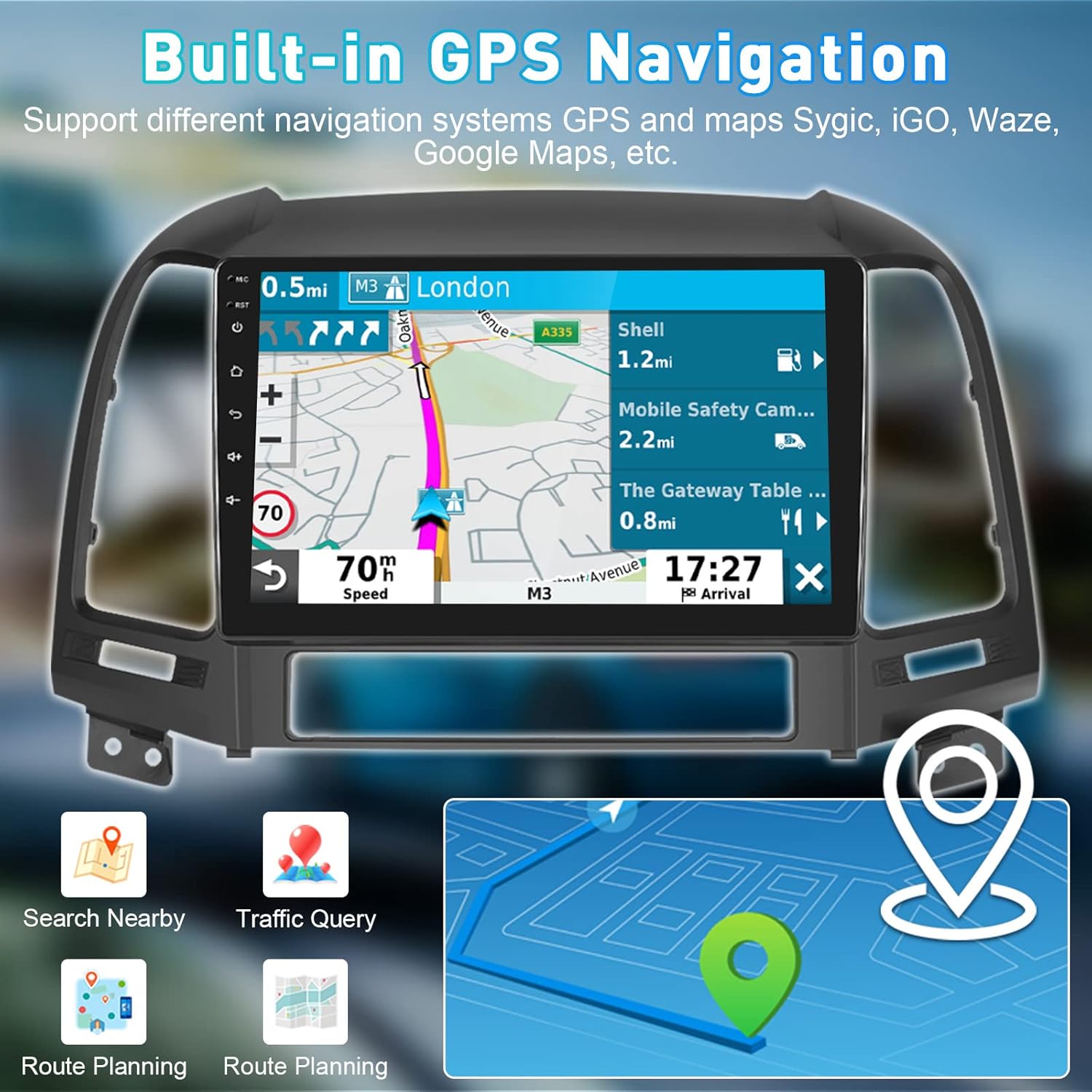 Roinvou for Hyundai Santa Fe 2006-2012 Android Car Radio Stereo 9 Inch Capacitive HD Touch Screen Mirror Link GPS Navigation Head Unit with WiFi Bluetooth USB FM RDS Steering Wheel Controls