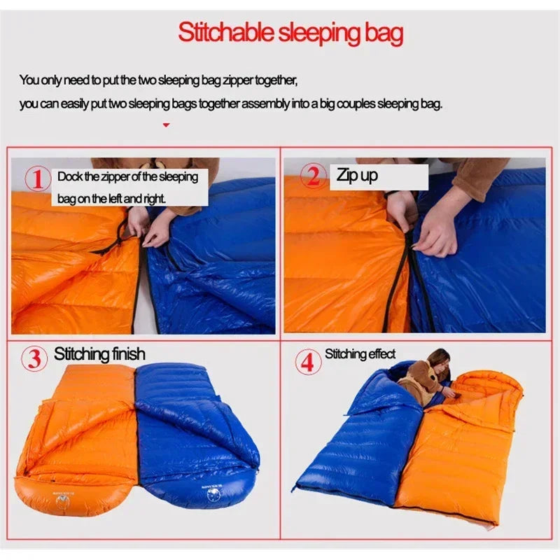 Size 220X85cm Lengthening And Widening Suitable For Tall People Good Quality White Goose Down Thermal Sleeping Bags Camping