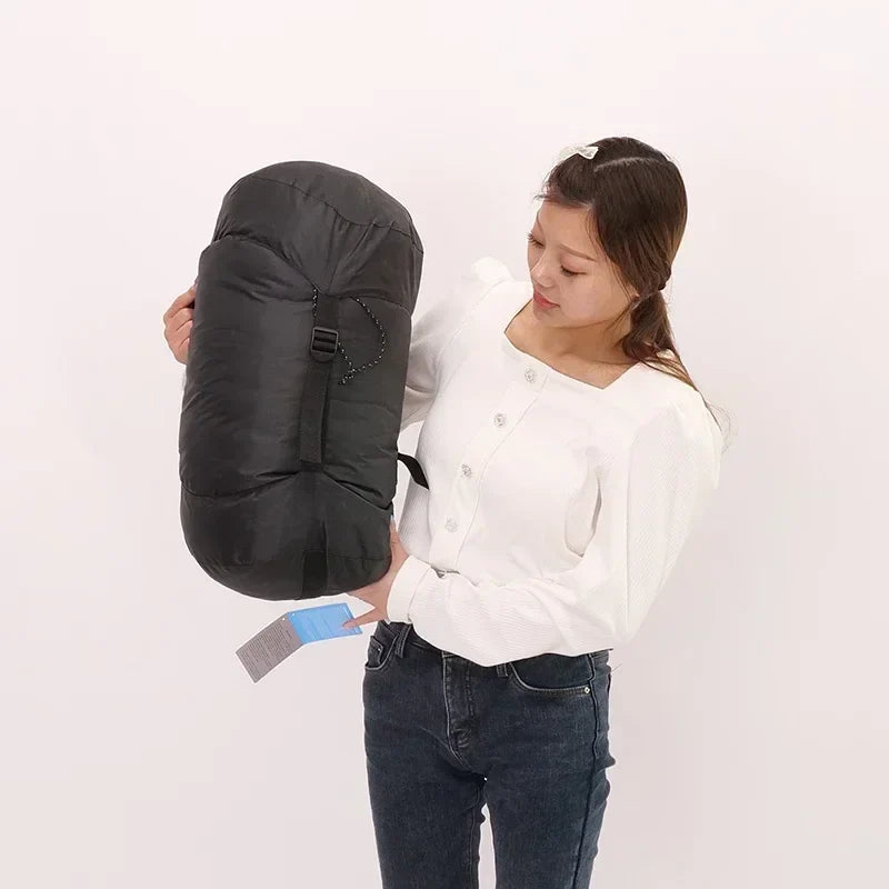 White goose down filling material, comfortable and keep warm.Down is fluffy, sleeping bag is light, but it's warm.