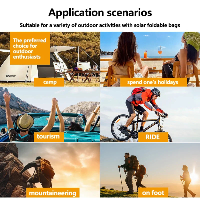 Packaging list: Solar foldable bag * 1 Battery clip * 1 Car charger * 1 Dual head DC cable * 1 Dual USB junction box * 1 Digital conversion connector * 1 User manual * 1