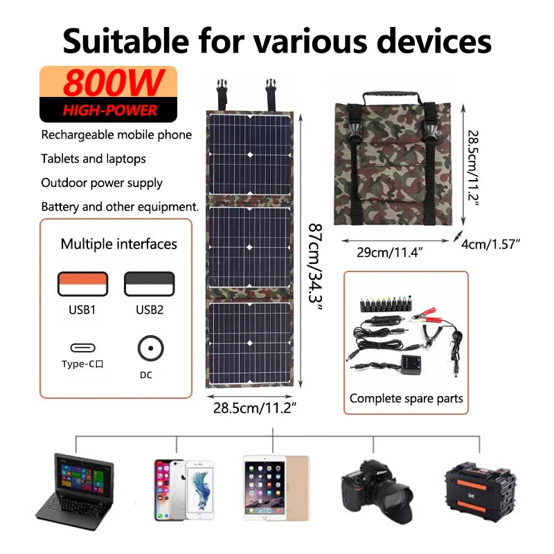 800W Solar Panel Kit Complete Camping Foldable Solar Power Station MPPT Portable Generator Charger 18V for Car Boat Caravan Camp