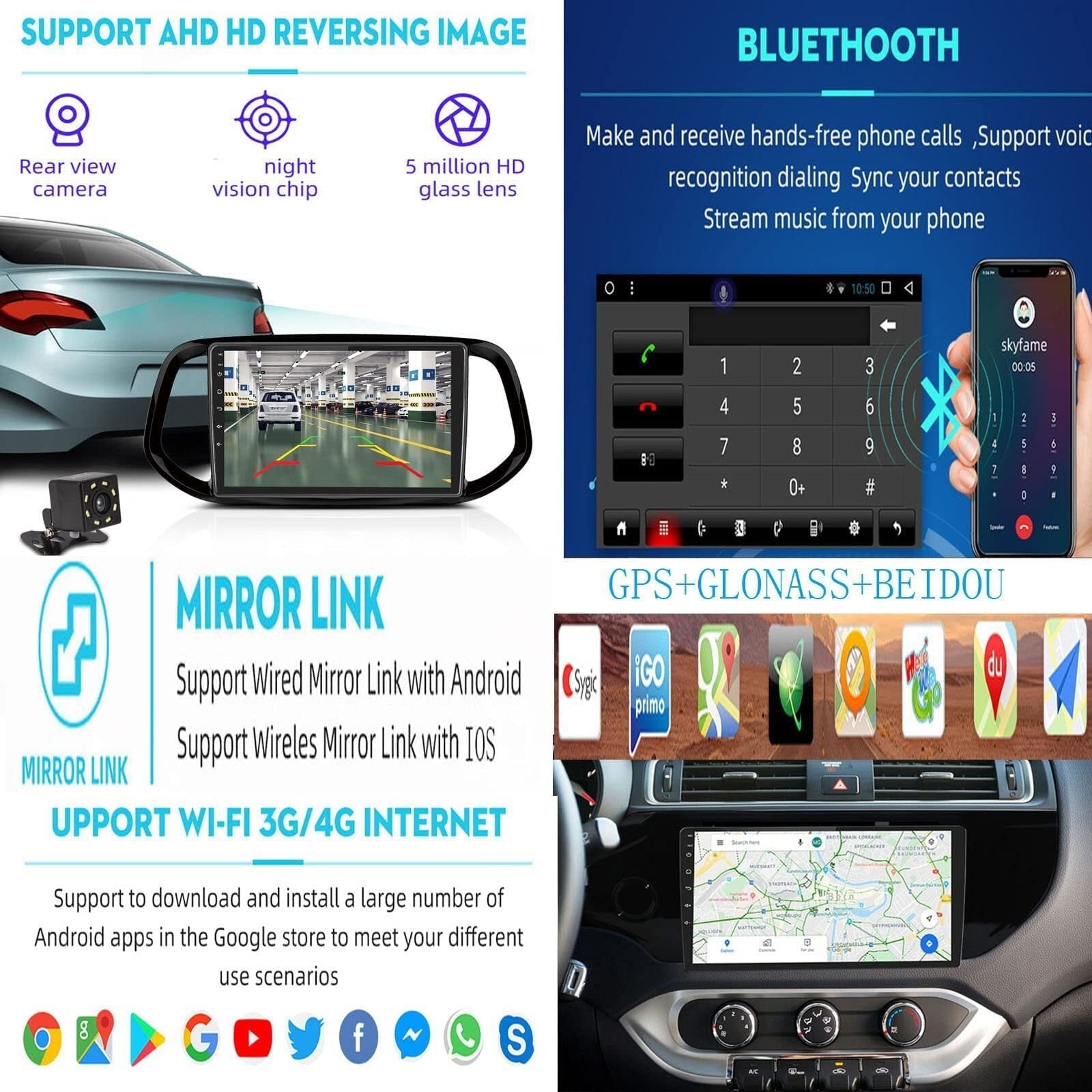 *[BLUETOOTH]: Built-in Bluetooth, support handsfree call, music playback and access to phonebook. High-quality FM/RDS radio to listen to weather forecast, news and real-time traffic information.