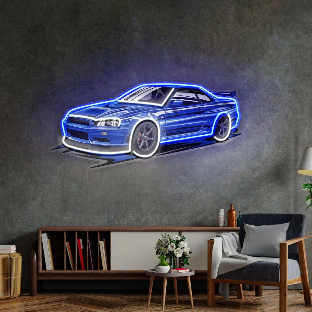 Sports Car Neon Sign UV Print Blue Sport Car Neon Game Room/Boy Room Decor Racing Car Bar Club Wall Decor Gift for Him