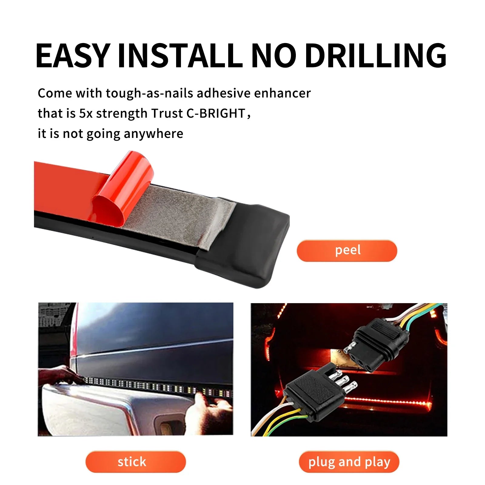 Easy Installation:Just peel and stick, standard 4 pin flat connector plug and play