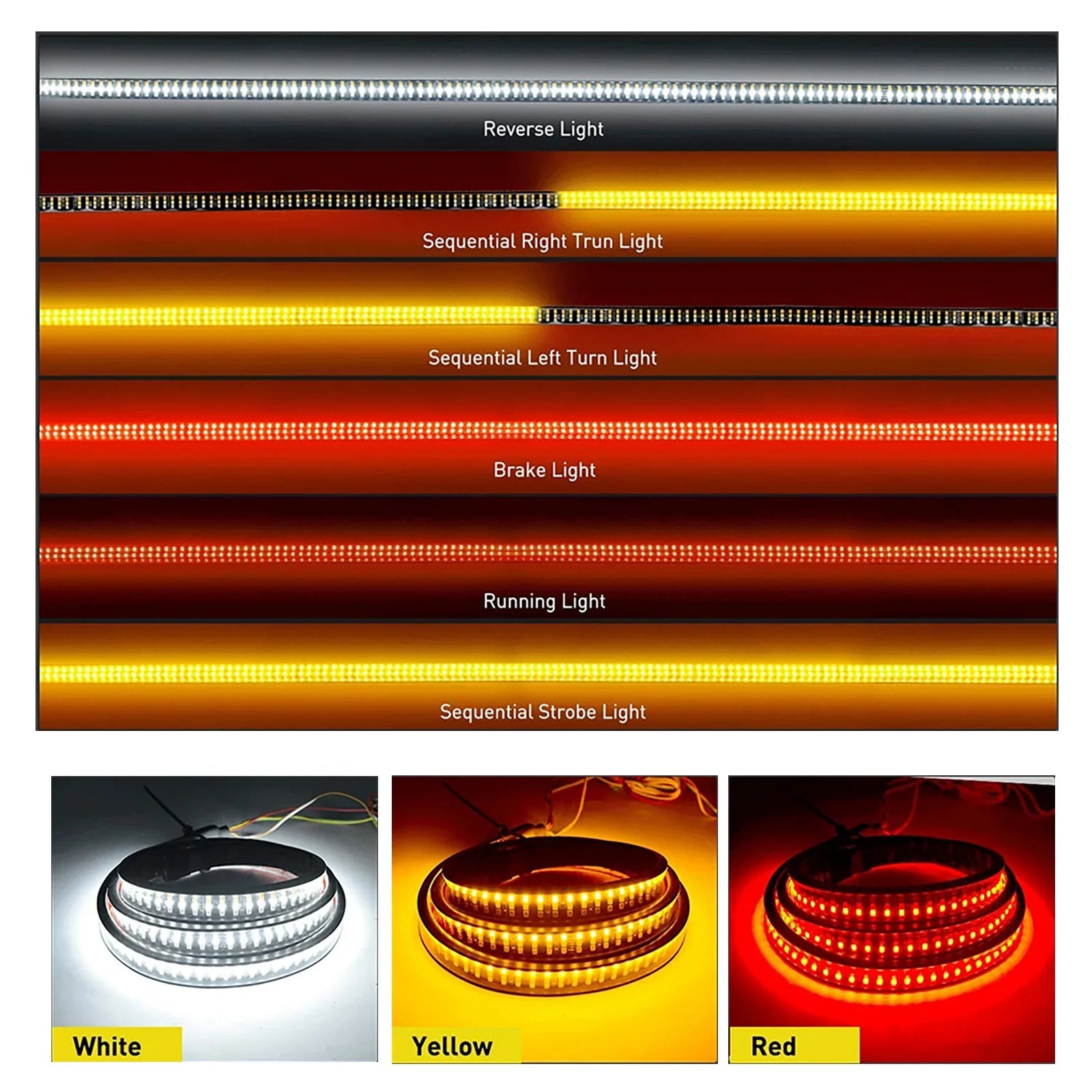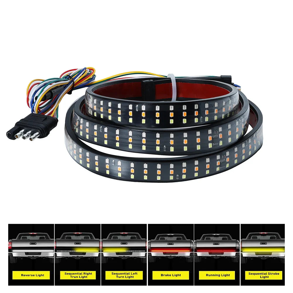 Tailgate Light bar 1.5 Meter Triple Row LED Strip for Pickup Trailer SUV RV Red Brake White Reverse Sequential Amber Turning