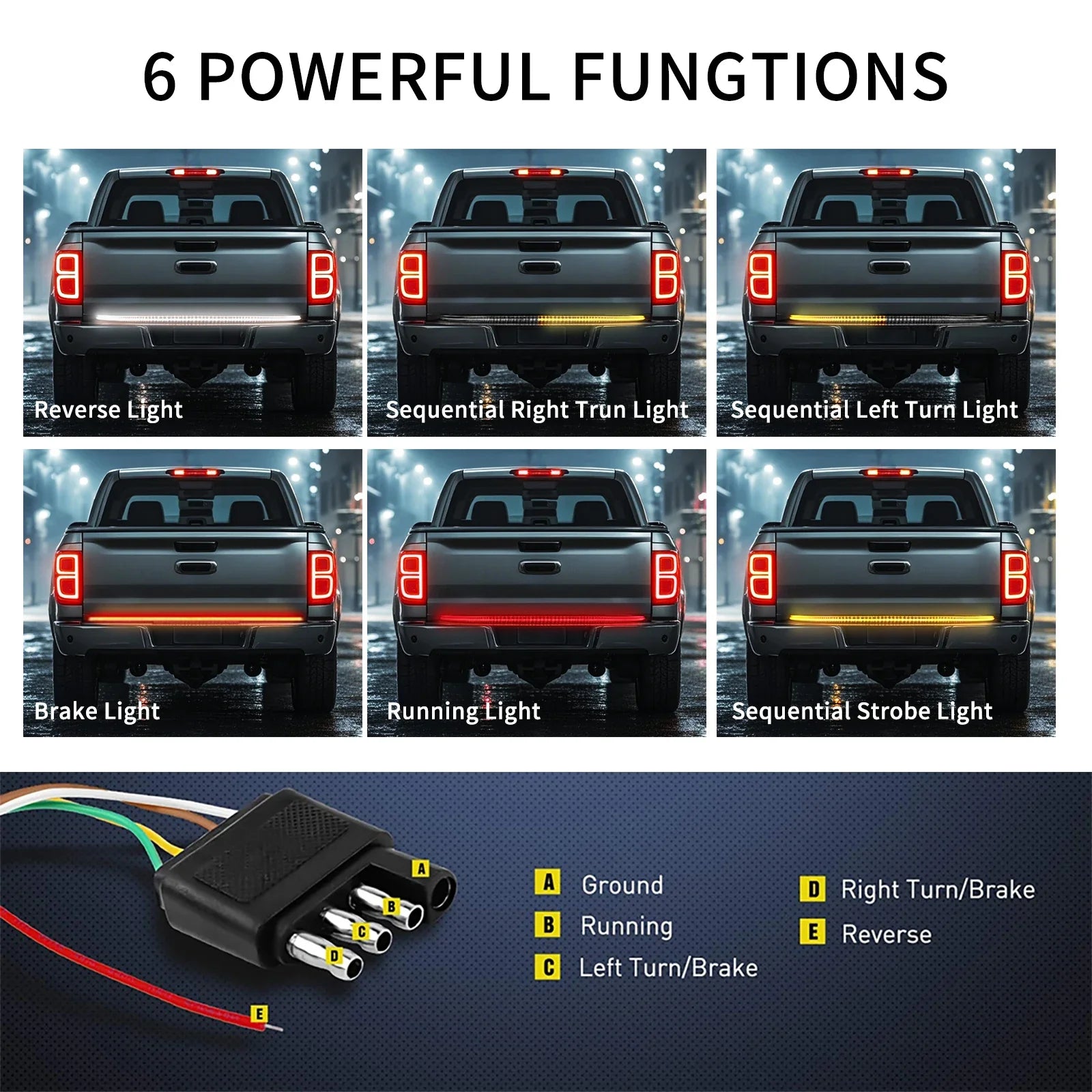 Functions: 6 Smart Lighting Functions(driving, braking, reversing, turning, emergency flashing, etc.)