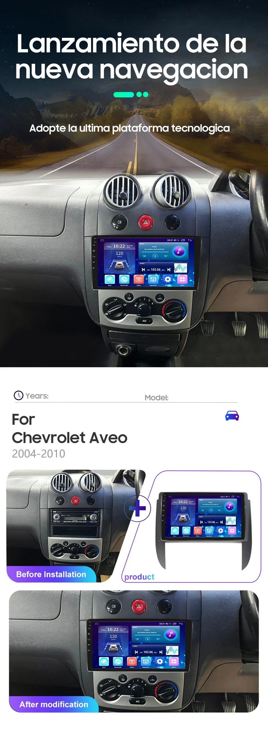 TDARRM For CHEVROLET Aveo 2004-2010 Android 9inch Car Radio GPS Navigation Multimedia Player Carplay Video Player Head Unit