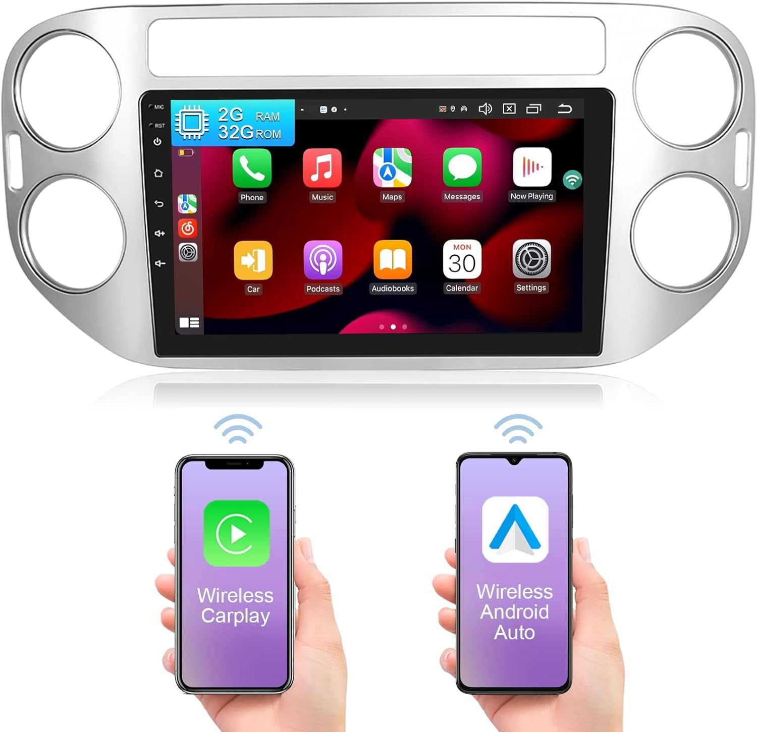THONZER for Volkswagen Tiguan 2010 2011 2012 2013 2014 2015 Android Car Stereo 2+32G Support Wireless Carplay&Android Auto with 9 inch Touchscreen GPS Navigation Bluetooth USB WiFi FM/RDS Radio