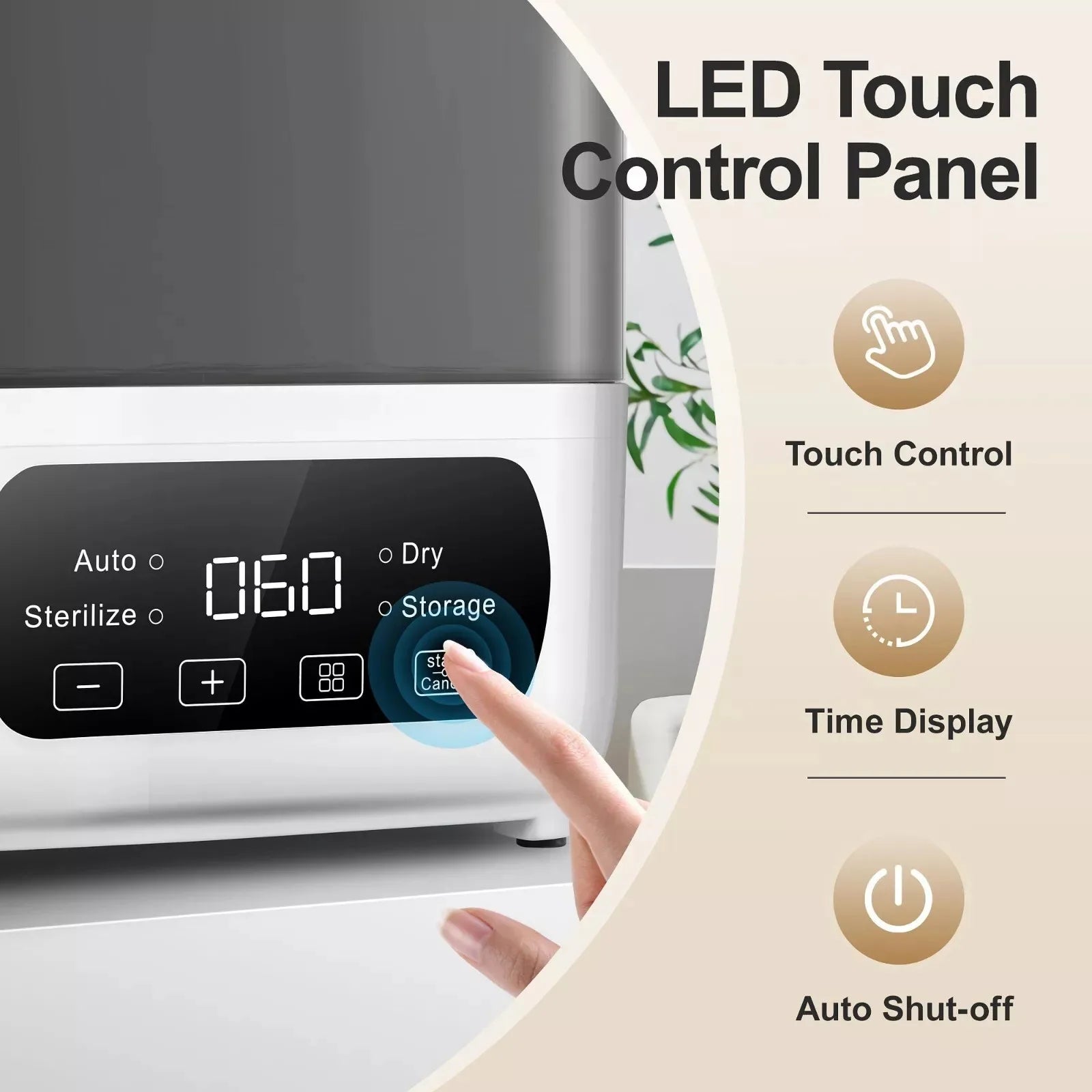 Tieasy 4-in-1 Electric LED Touch Screen Multi-Function Gray Baby Bottle Sterilizer Dryer BBS001