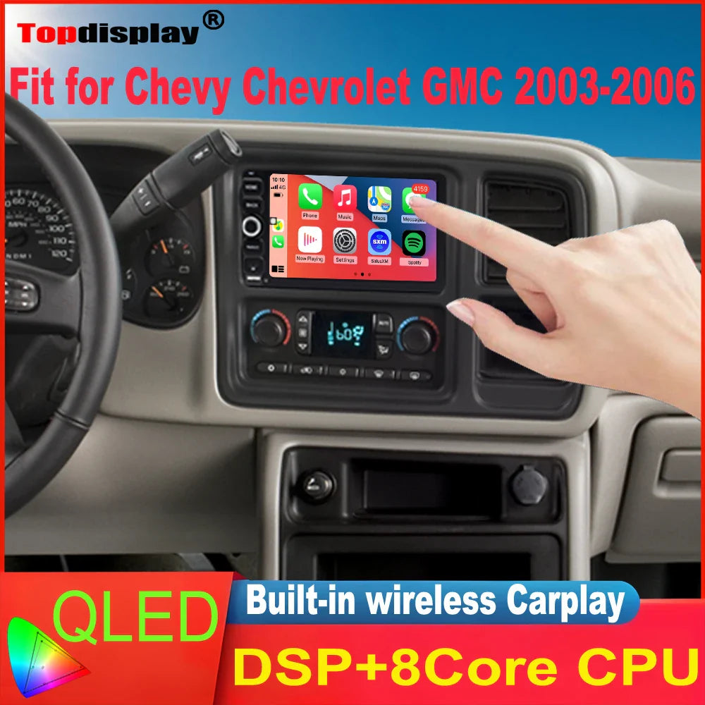 Topdisplay 8-Core QLED Radio Upgrade For Chevy Chevrolet Silverado SSR Tahoe 2003-2006 GMC Yukon 2003-2006 Hummer H2 2003-2007