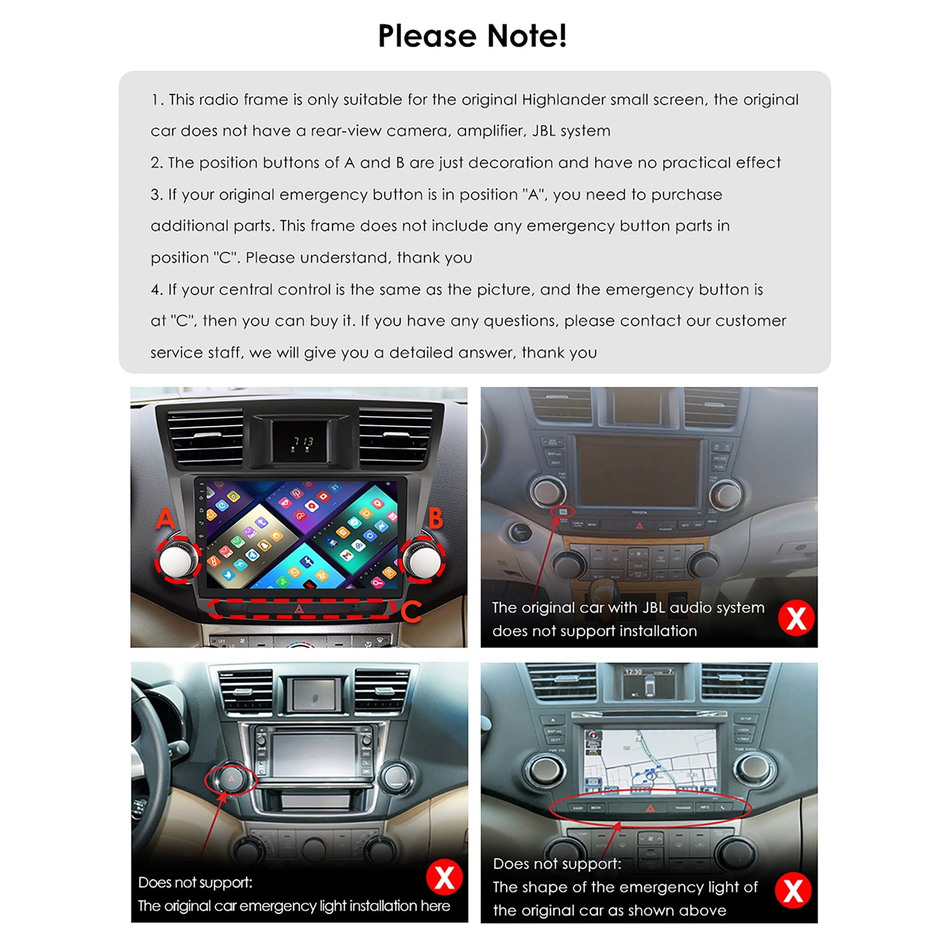 Compatible Vehicles: Toyota Highlander 2008 2009 2010 2011 2012 2013 Note: Before you make the purchase, please check if your car model is on the compatible list. This unit is a 2 din radio with 10.1" touch screen. You can watch videos and listen to music on this unit. It's running Android 13 system, so most of Android Apps can be used on this unit, such as Youtube, Google Chrome, Facebook, etc. This unit also has the built-in GPS navigation system. Bluetooth, Wifi and hotspot connections are supported on this unit as well. The steering wheel control can work with this unit if your car model is on the compatible list.