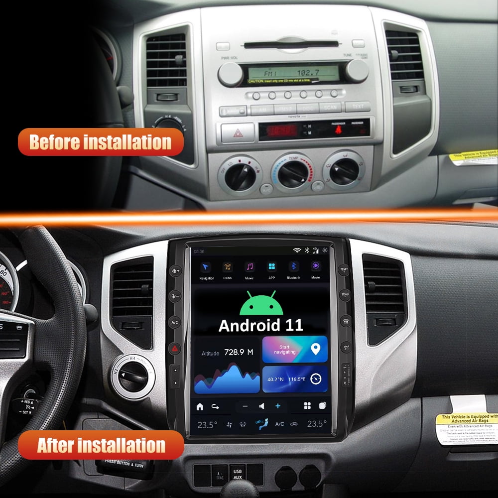 Head Unit Replacement For Toyota Tacoma 2005-2015 - Fabricated to fit your car perfectly - Pure Android 11.0 OS with carplay - Video Format: Support HD 1080P - Screen Resolution: 1920*1080, capacitive Multi-Touch screen - Bluetooth hands-free phone call, Synchronize contact list - Built-in WiFi function - Built-in Google Play Store - Built-in GPS Offline Map, Support Online Map - Audio Output: 4*45W EQ: 9 Equalizers for Sound - Radio Chip: AM / FM with RDS - Support AUX-IN Audio, with USB port - Support Steering Wheel Control - Certification: CE FCC RoHs - Voltage: DC 12V - OSD Language: English / Russian / French / German / Spanish / Italian / Arabic / Portuguese / Turkish / Thai / Polish / Hebrew etc. - 4 GB of Ram and 64 GB of Storage