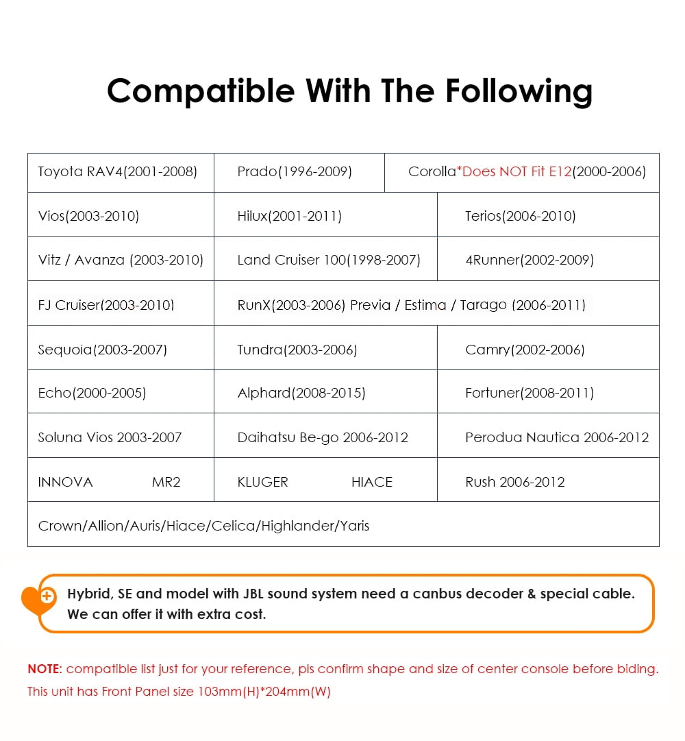Compatible Vehicles: Please check the compatible list picture above for reference. Note: Before you make the purchase, please check if your car model is on the compatible list. This unit is a 2 din radio with 7" touch screen. You can watch videos and listen to music on this unit. It's running Android 12 system, so most of Android Apps can be used on this unit, such as Youtube, Google Chrome, Facebook, etc. This unit also has the built-in GPS navigation system. Bluetooth, Wifi and hotspot connections are supported on this unit as well. The steering wheel control can work with this unit if your car model is on the compatible list.
