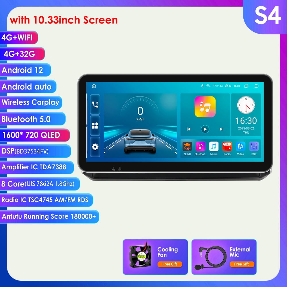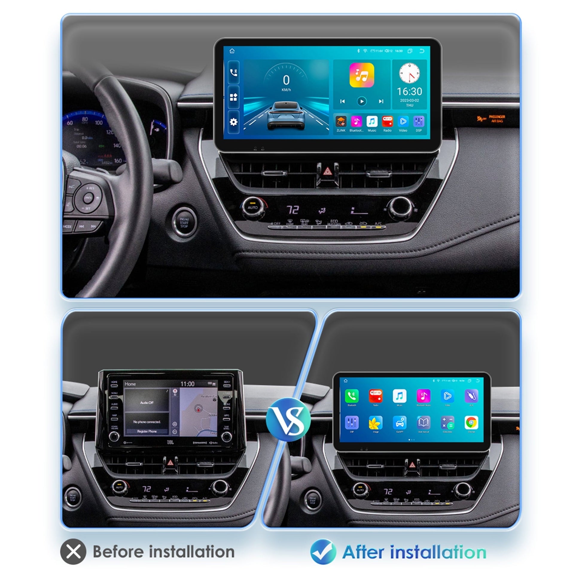 Compatible Vehicles: Toyota Corolla 12 2018 2019 2020 2021 Note: Before you make the purchase, please check if your car model is on the compatible list. This unit is a 2 din radio with 10.33" touch screen. You can watch videos and listen to music on this unit. It's running Android 12 system, so most of Android Apps can be used on this unit, such as Youtube, Google Chrome, Facebook, etc. This unit also has the built-in GPS navigation system. Bluetooth, Wifi and hotspot connection are supported on this unit as well. The steering wheel control can work with this unit if your car model is on the compatible list.