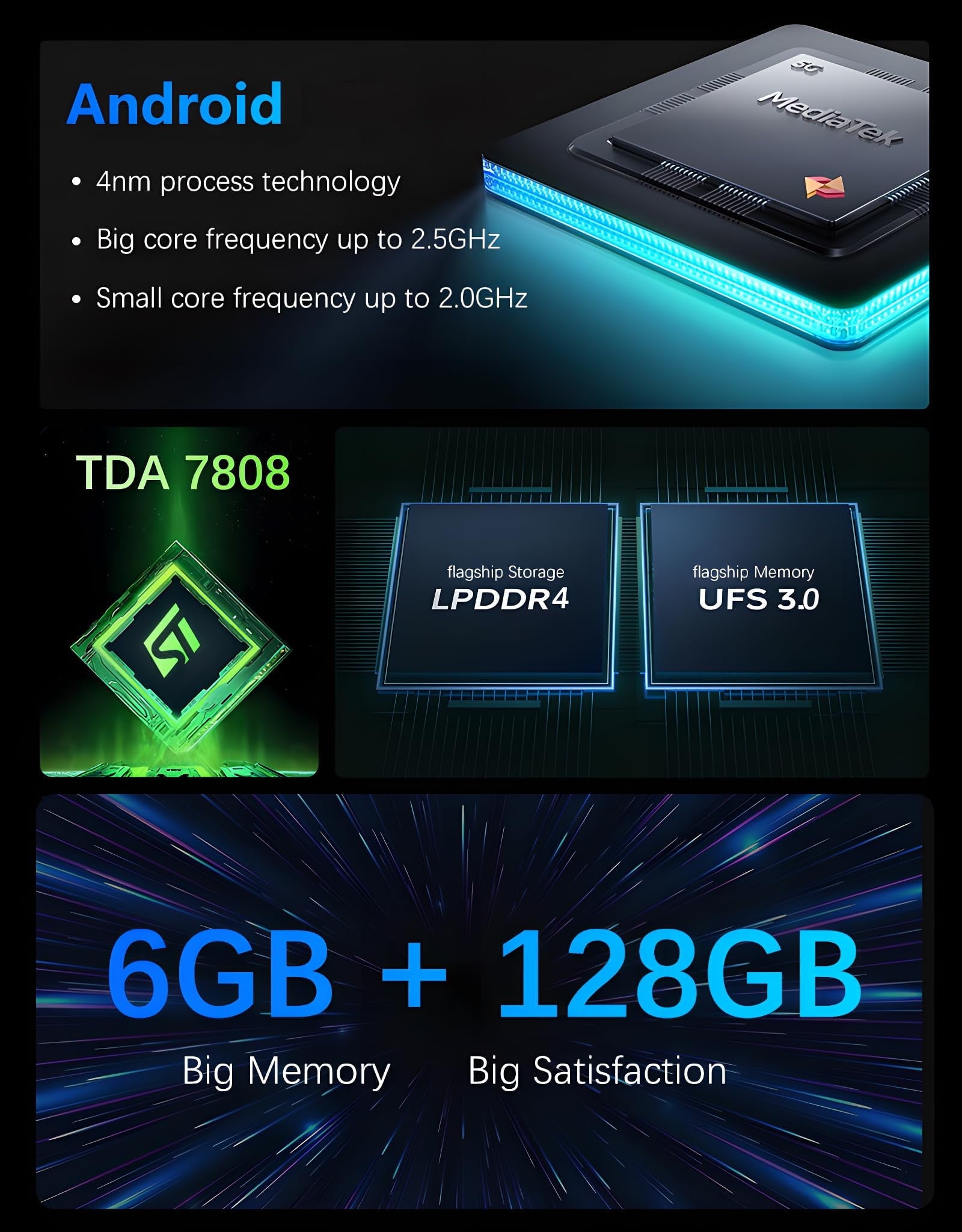 - Memory: 6GB (RAM) + 128GB (ROM)