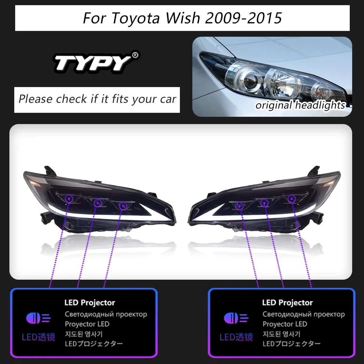 TYPY Car Headlights For Toyota Wish 2009-2015 LED Car Lamps Daytime Running Lights Dynamic Turn Signals Car Accessories