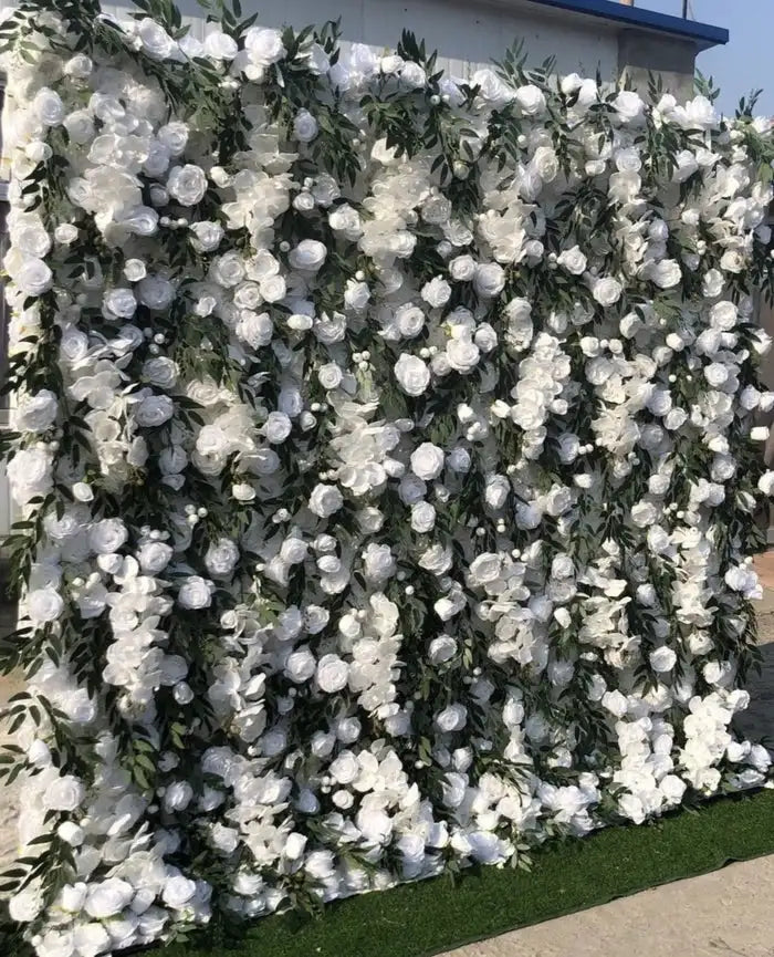 Uflower Mixed Flower White Rose Green Willow Leaf 5D Floral Wall Wedding Backdrop Event Party Decoration Props Wedding Decor