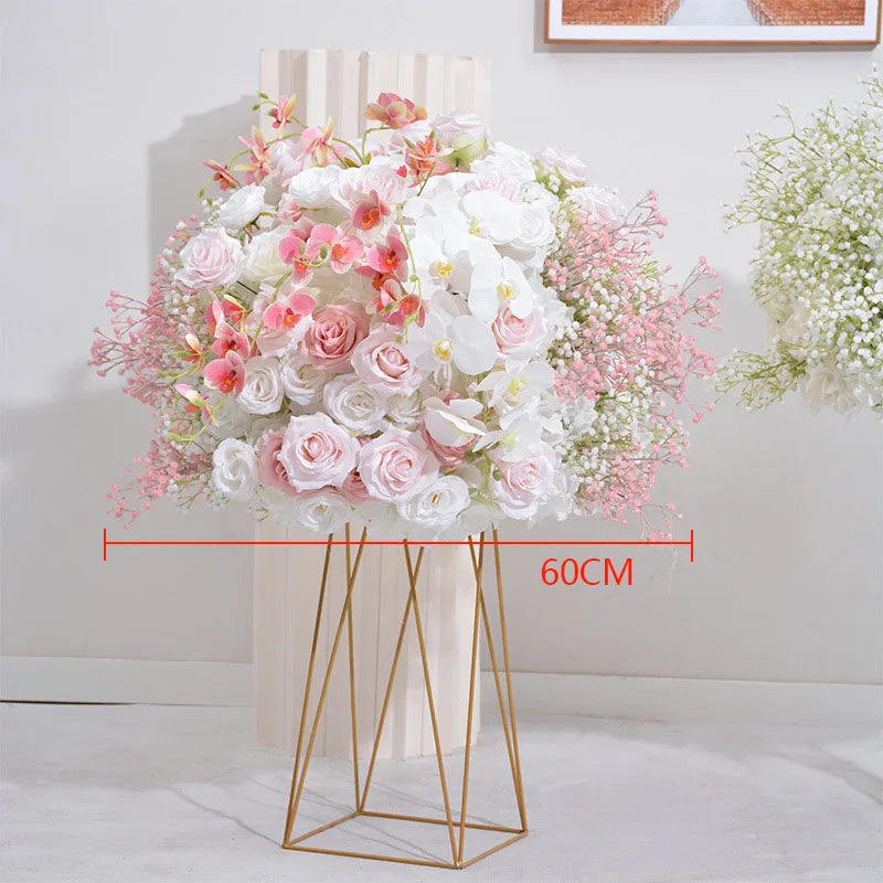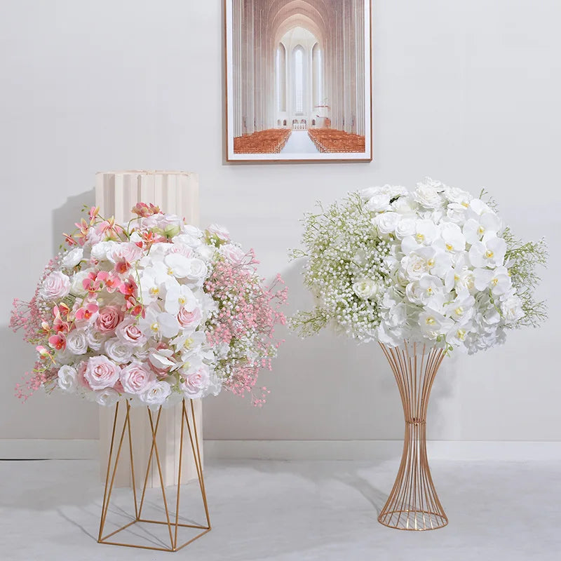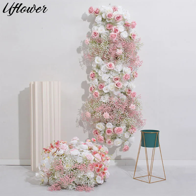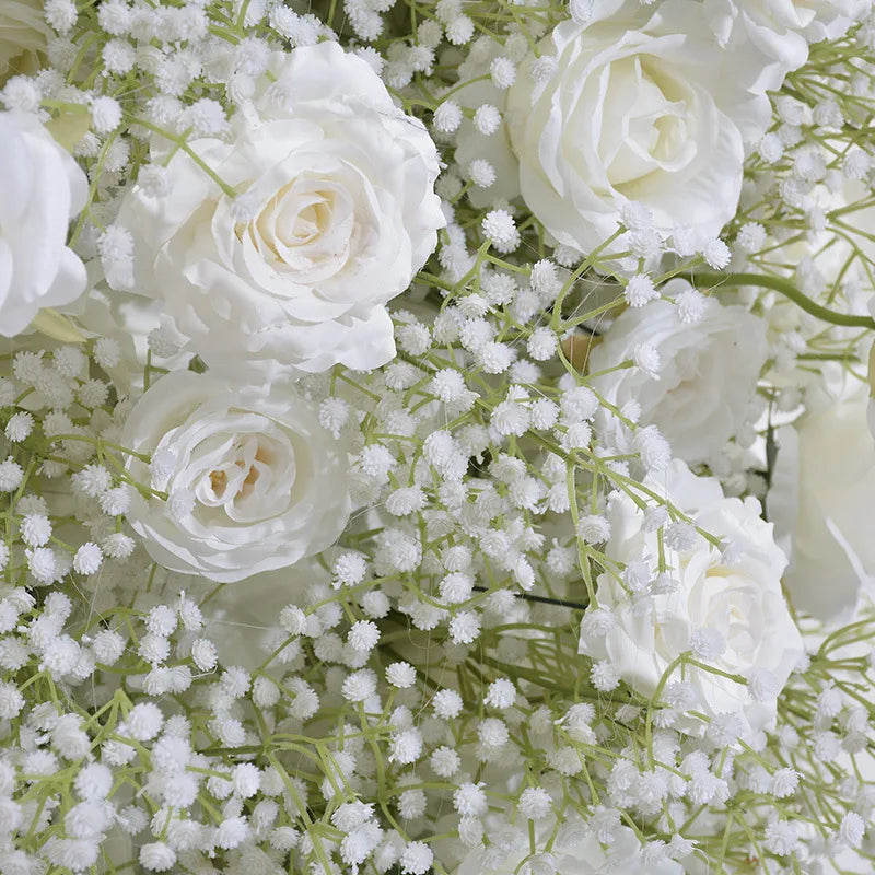 Uflower White Rose Gypsophila Artificial Flower Row Arrangement Wedding Table Centerpieces Floral Ball Window Display Party Prop
