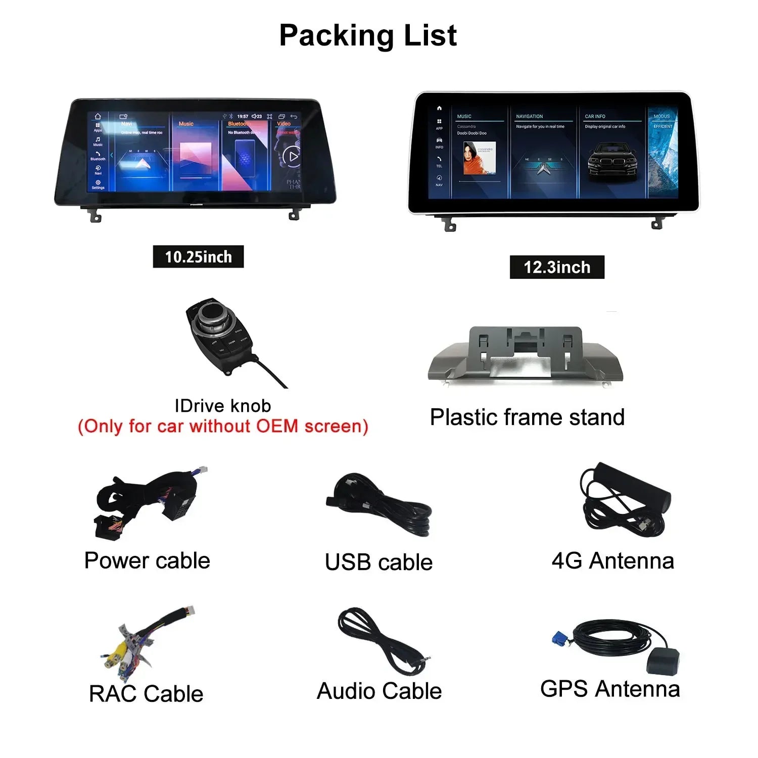 6,Original BMW system: Support all the original BMW functions, like factory radio, GPS navigation, Bluetooth, DVD/CD,USB,SD, etc, support factory rear view camera reverse trajectory. 360 camera, door open warning, be compatible with original joystick, touch mouse and steering wheel control, be compatible with original sound system and optic fiber, play lossless audio.