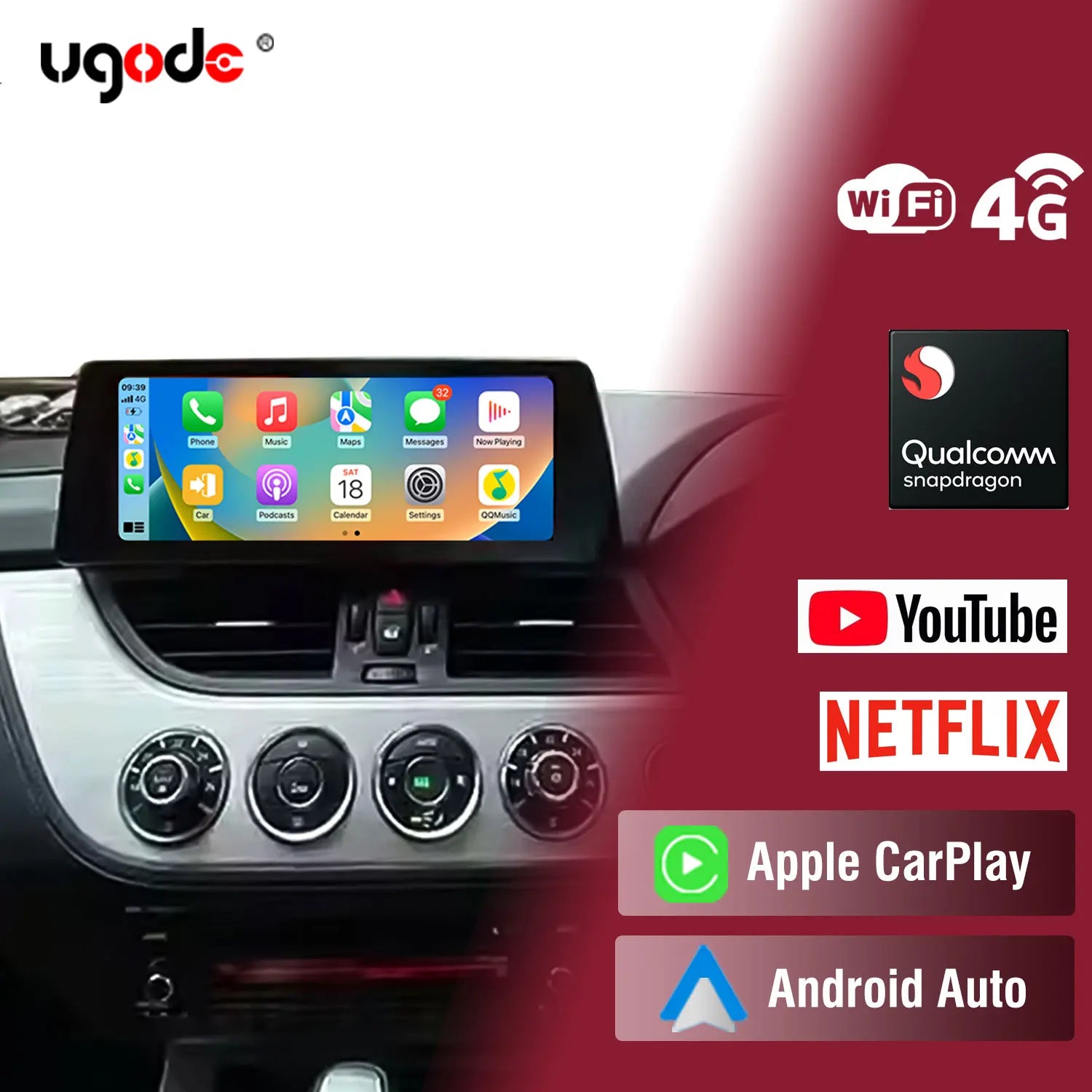Ugode 12.3'' Android 13 Screen Display Wireless CarPlay Head Unit AUTO For BMW Z4 E89 Car Multimedia Video Players GPS Bluetooth