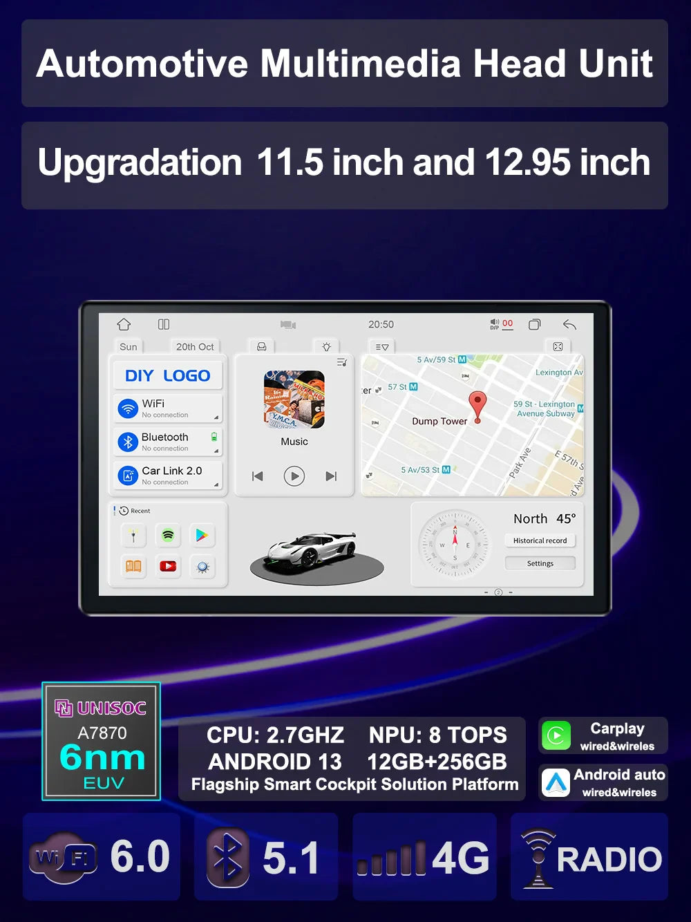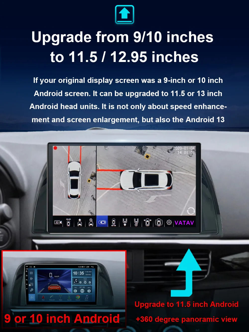 It can be upgraded to an Android host of 11.5 or 12.95 inches.