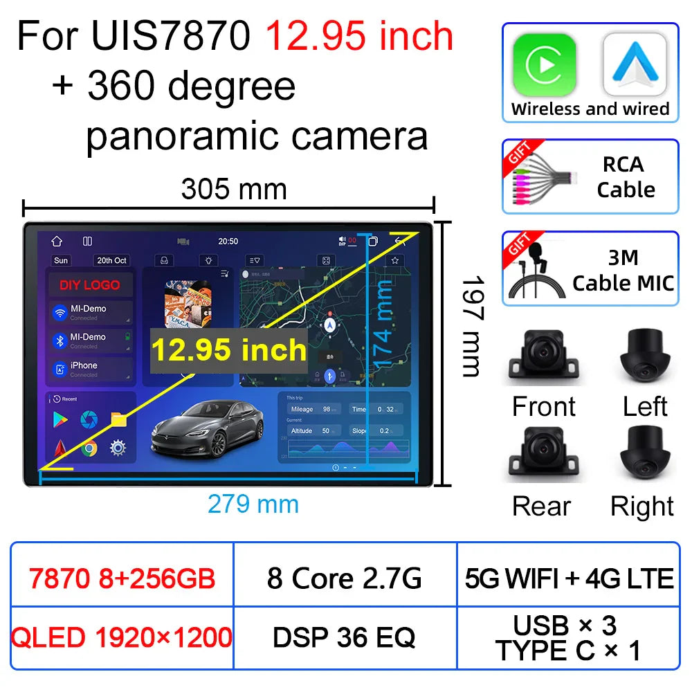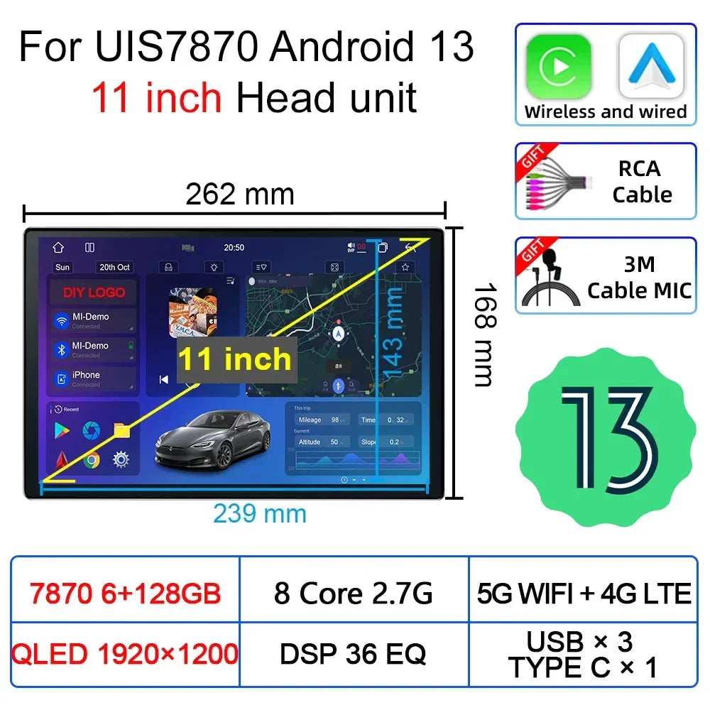 Upgradation UIS 7870 Android 11 13 inch Car Multimedia AI Voice mp5 Palyer gps navigation Carplay Auto Stereo Radio Head Unit