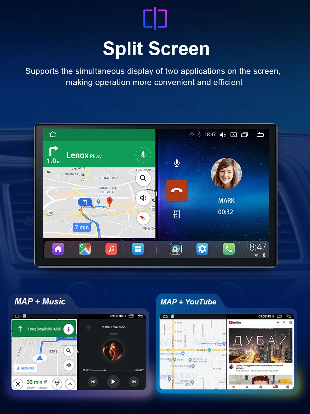 Supports the simultaneous display of two applications on the screen,making operation more convenient and efficient