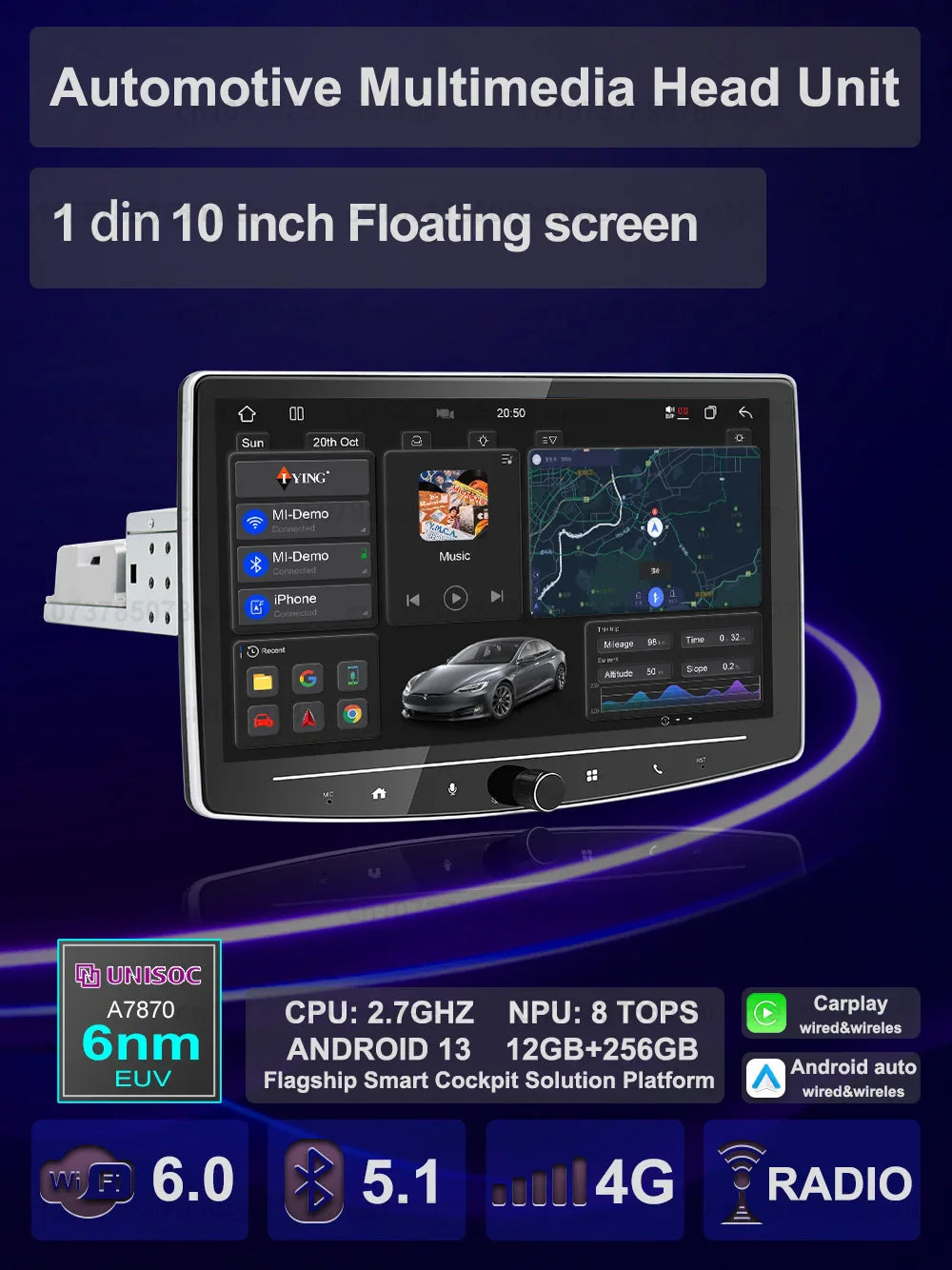 VATAV Android 13 1Din Floating screen Universal Multimedia AI voice Carplay Auto Stereo Radio Palyer Head Unit For Toyota Nissan