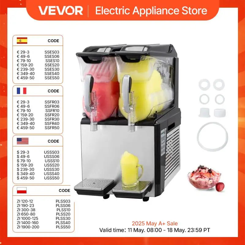 VEVOR 10L 20L 30L Slushie Machine Commercial Ice-Cool Juice Smoothie Slush Maker Frozen Drink Dispenser Vending Machine for Home
