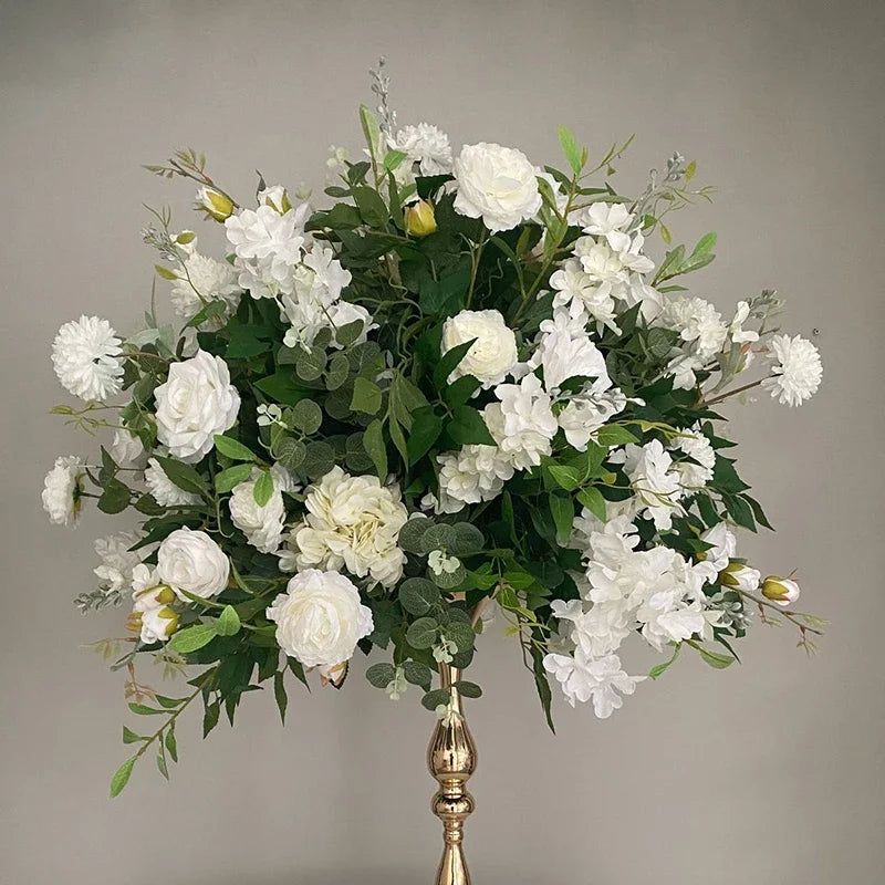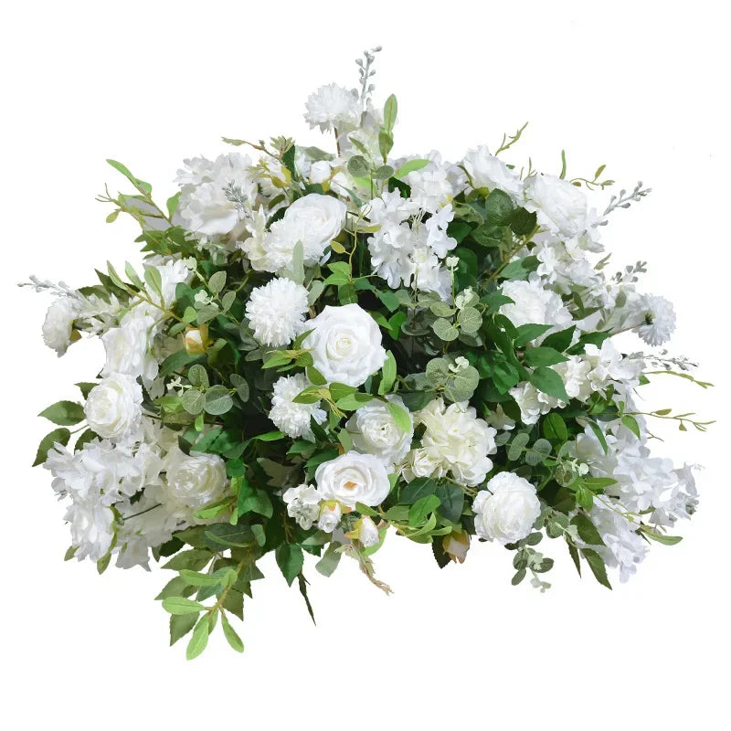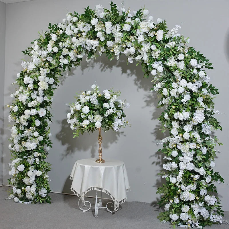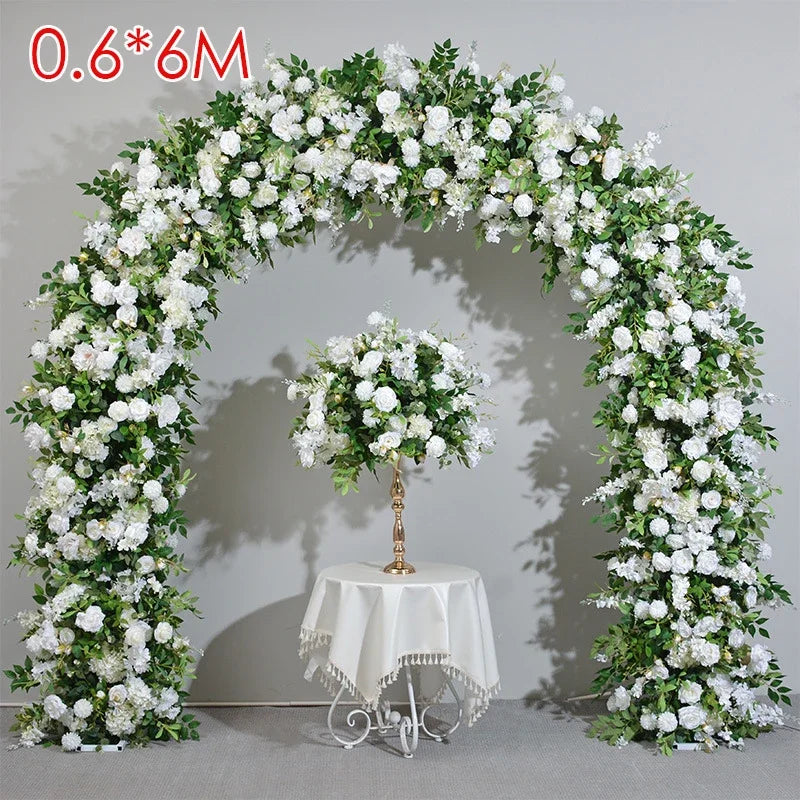 White Rose Green Plants Luxury Wedding Backdrop Decoration Artificial Flower Row Floral Arrangement Arch Props Decor Event Deco