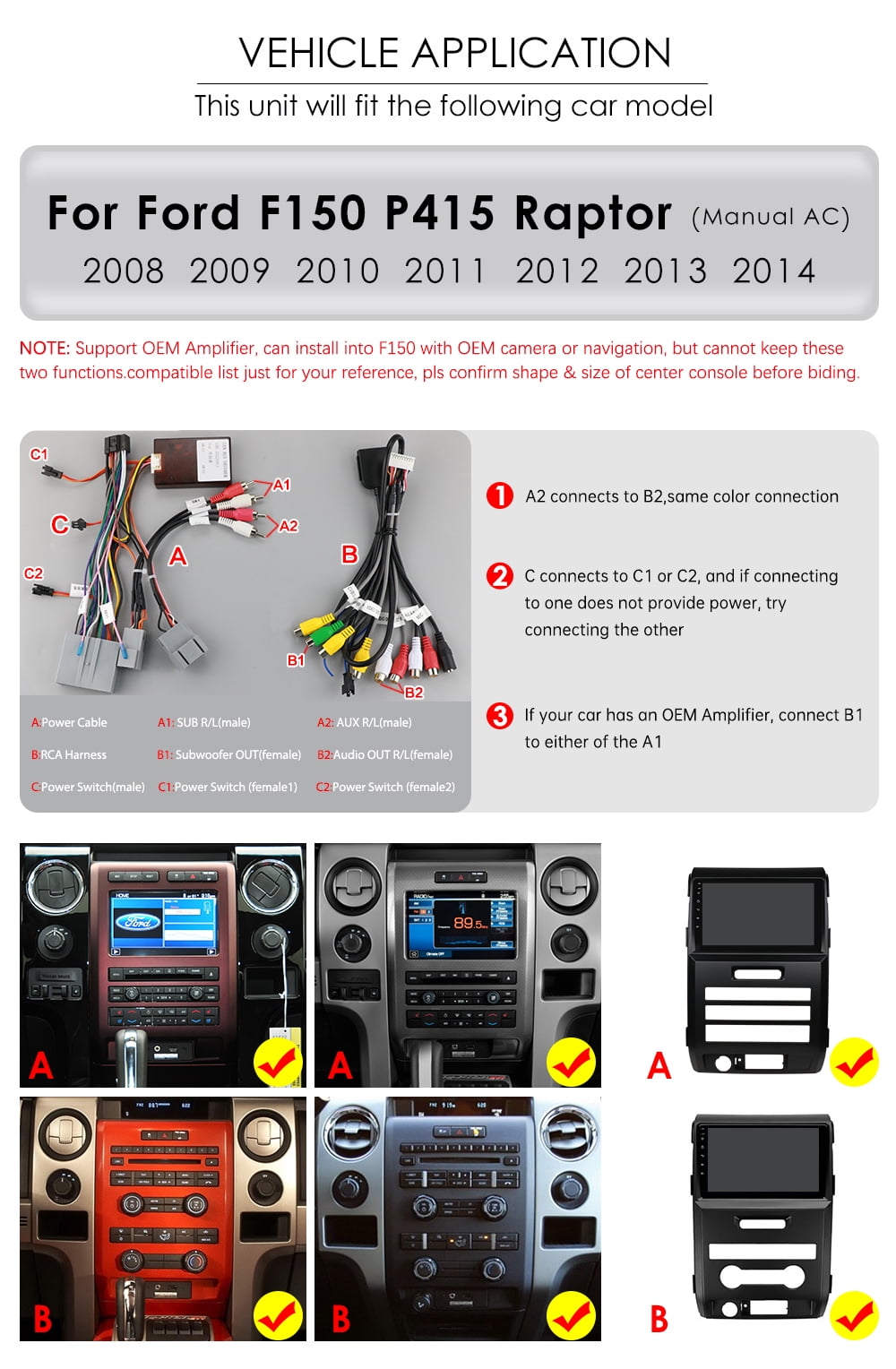 Note: This unit supports OEM amplifier and can be installed into F150 with OEM camera or navigation, but the OEM camera and navigation functions can not be kept.The compatible list is just for your reference. Please check the picture above to confirm the center console of your vehicle before buying.