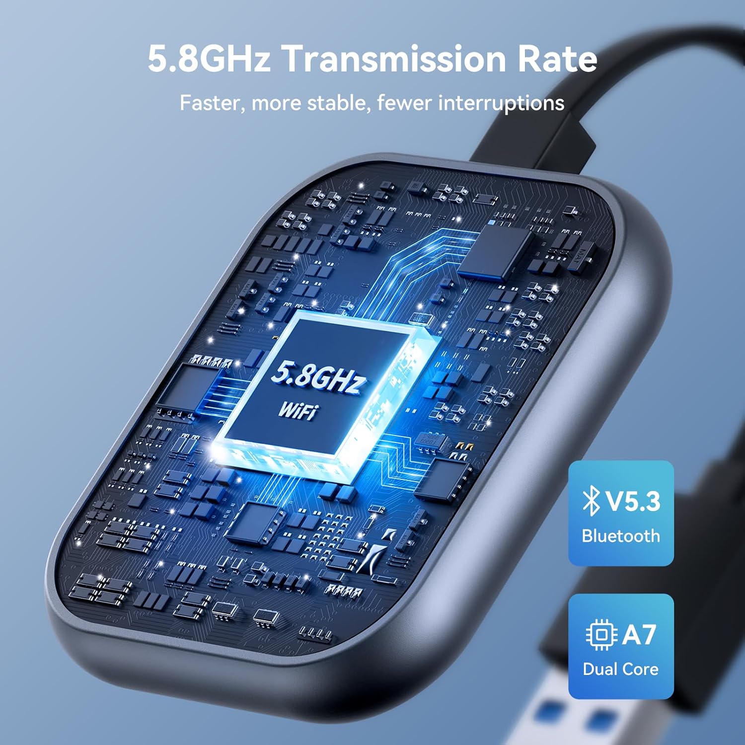 Wireless CarPlay Adapter 2024 Upgraded, 2 in 1 Wireless CarPlay & Android Auto Adapter Converts Factory Wired CarPlay to Wireless, Plug and Play Car Play Wireless Adapter, Compatible iPhone/Android