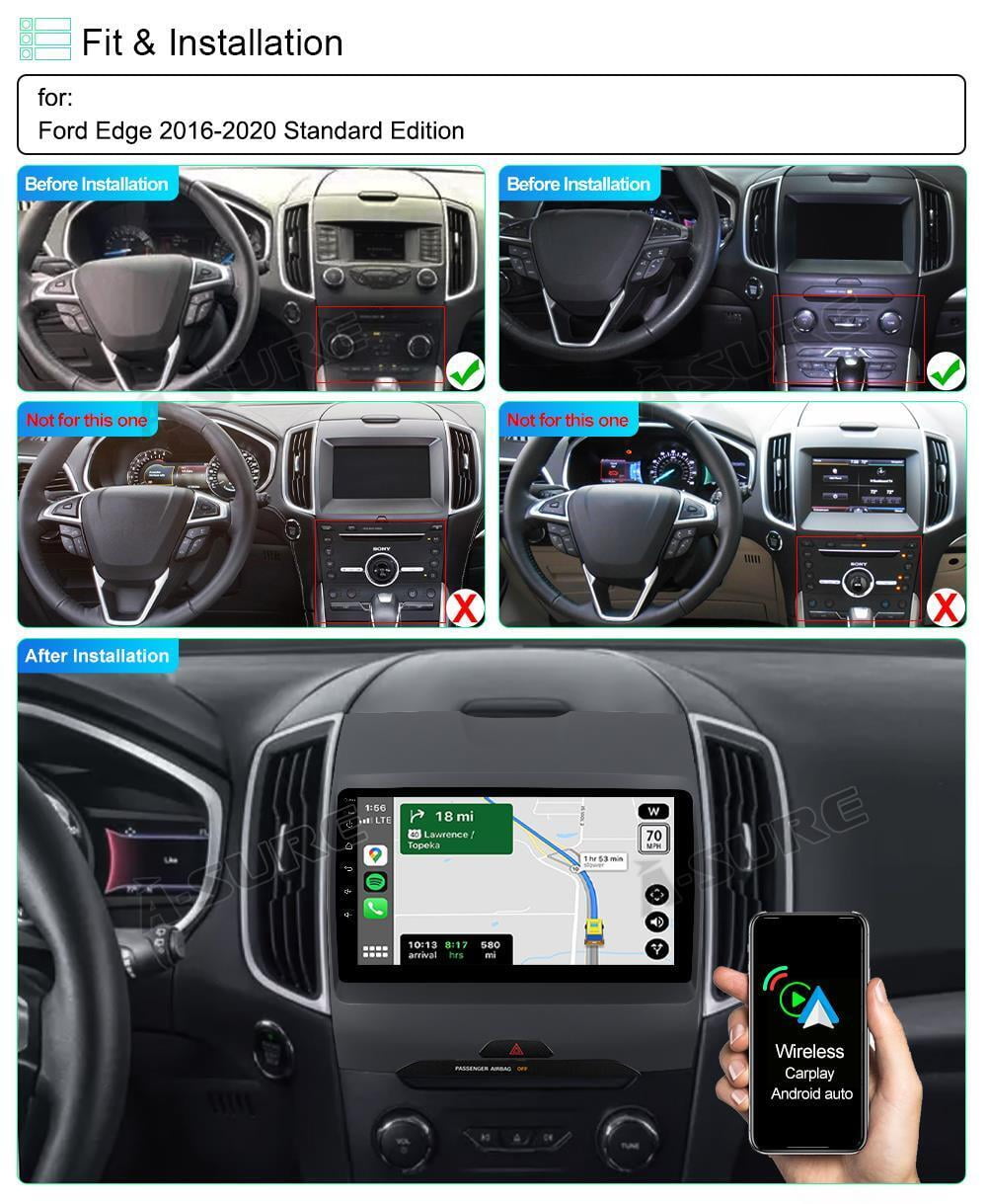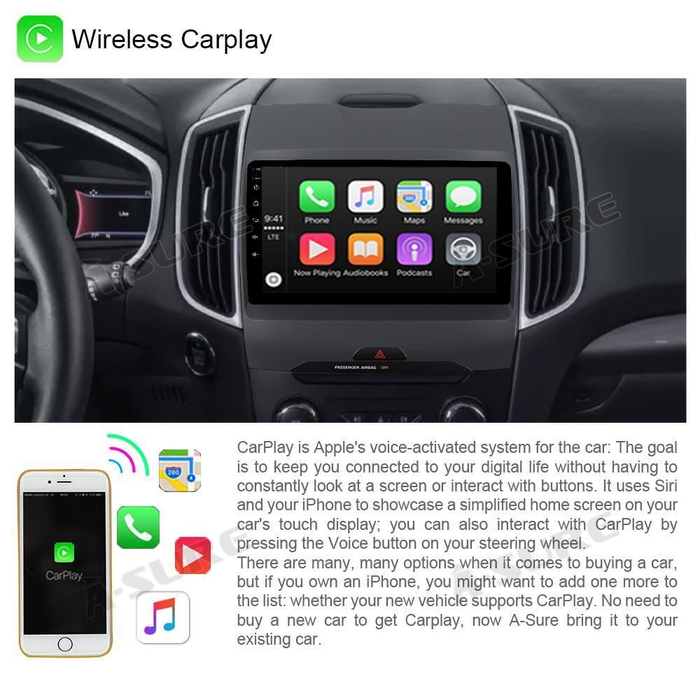 Wireless Carplay Android 10 Car Stereo GPS Radio 2+32GB for Ford Edge 2016-2020