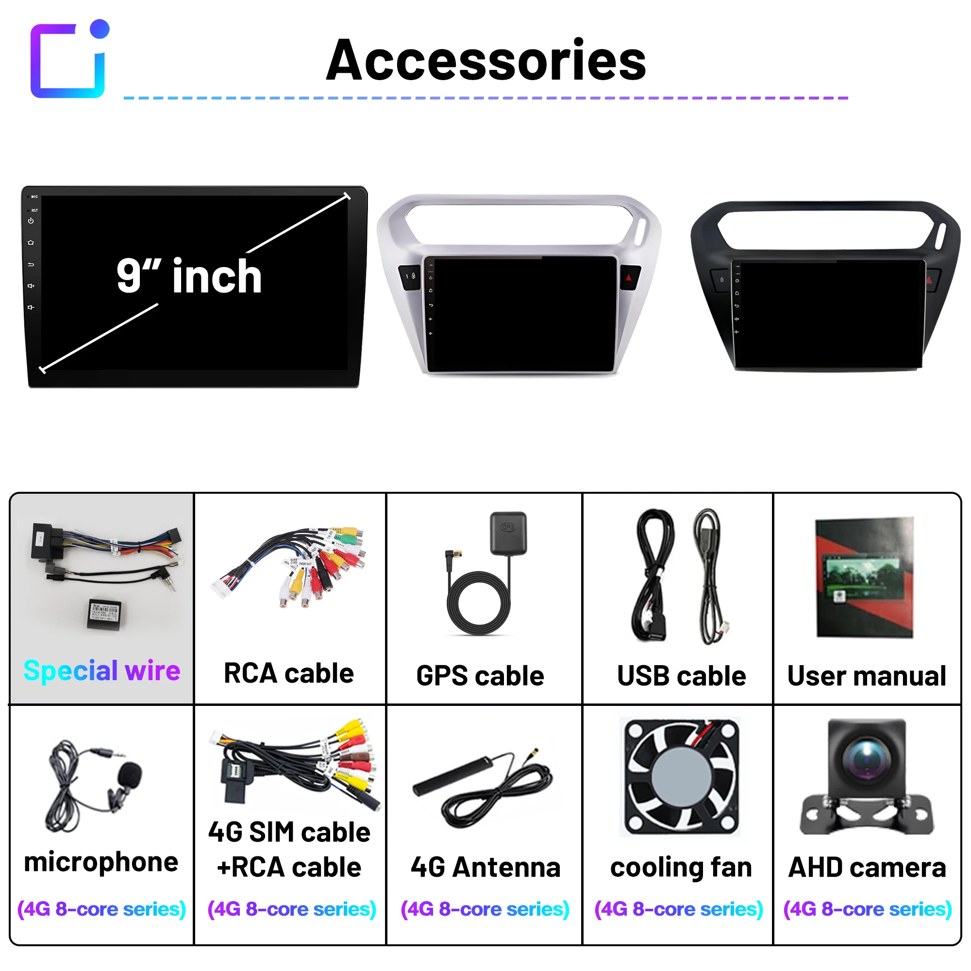 Wireless CarPlay Android Auto Car Bluetooth Radio For Peugeot 301 Citroen Elysee 2013-2018 2Din Android 14 DSP GPS FM Autoradio