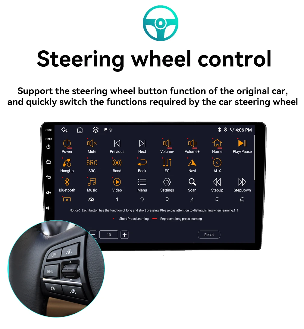 Support original car steering wheel learning, quickly switch functions which you want with your car's steering wheel, more convenient.